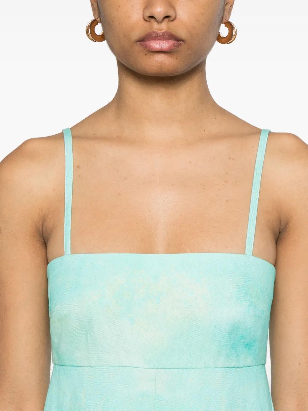turquoise blue-green concealed rear hook and zip fastening adjustable spaghetti straps square neck A-line