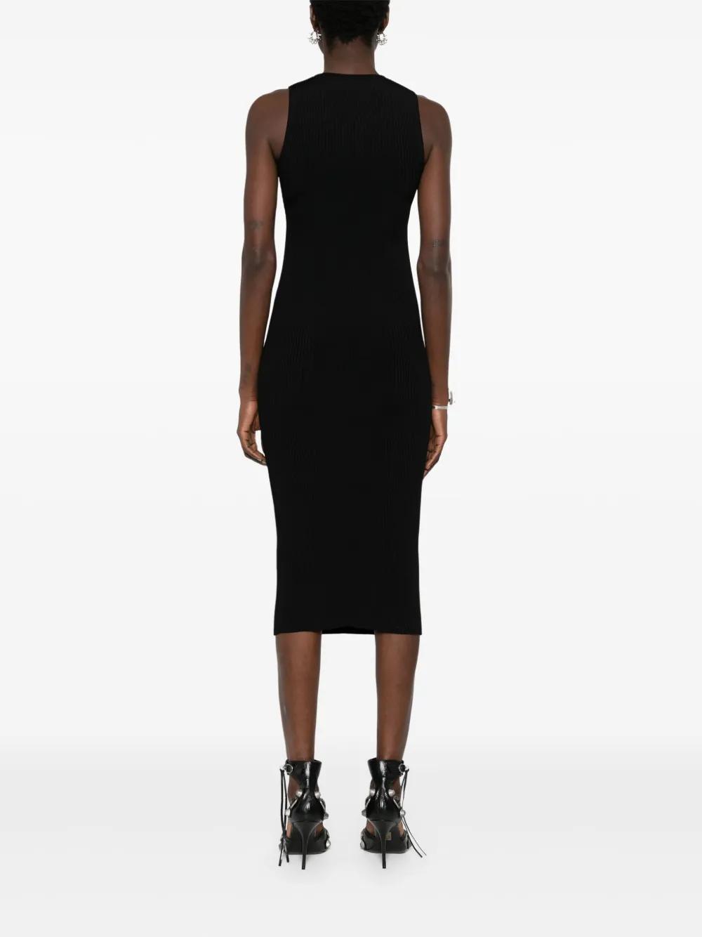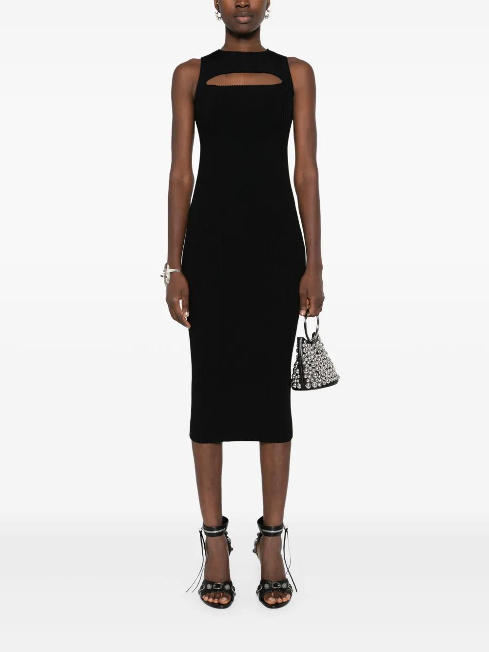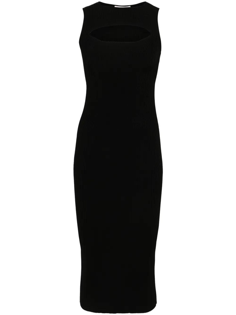 black ribbed knit round neck sleeveless cut-out detailing long length straight hem