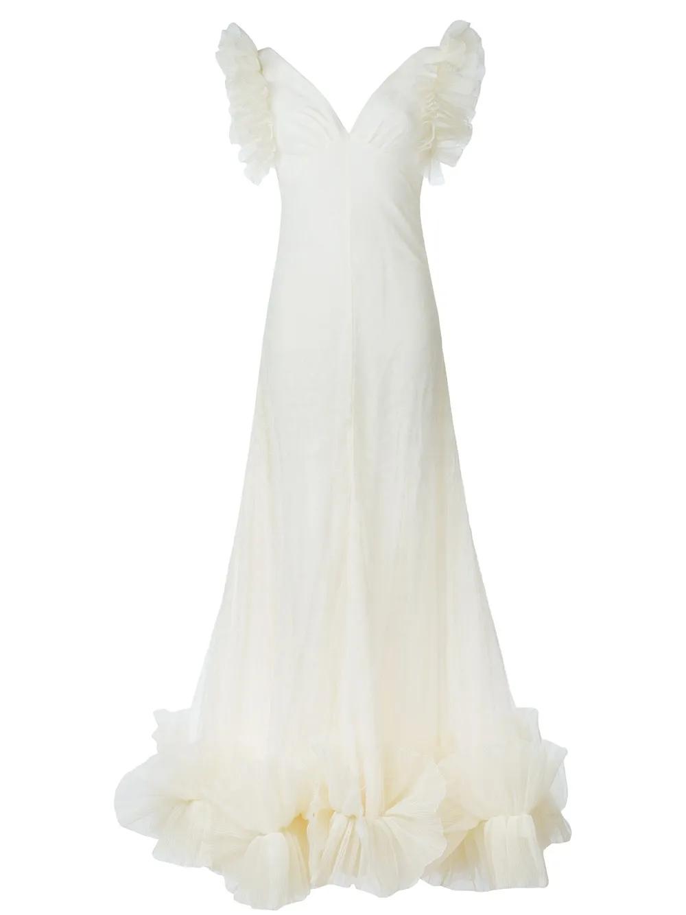 Alexander McQueen ruffled tulle evening dress - Neutrals