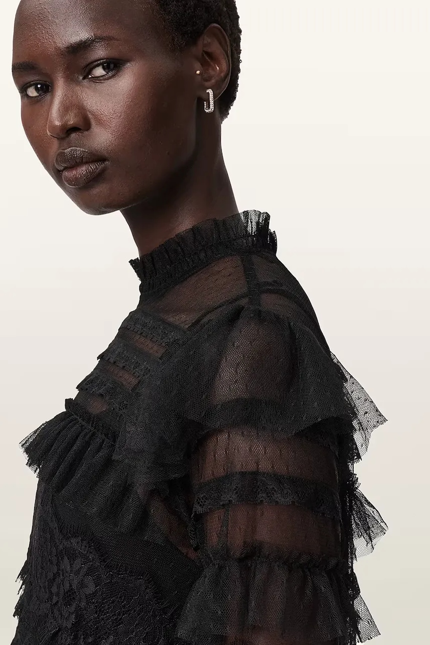 AllSaints sukienka kolor czarny maxi prosta W182DD