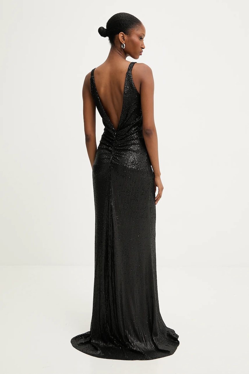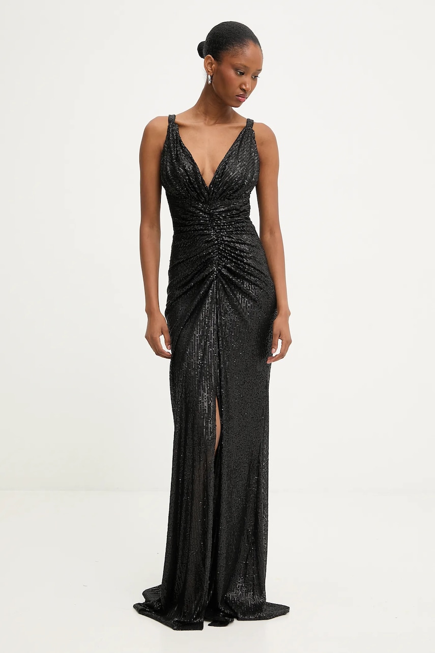 - Dopasowany fason z efektownymi marszczeniami. - Spiczasty dekolt. - Ozdobne wycięcie z tyłu. - Niewyjmowane wkładki lekko usztywniają i zapewniają dodatkowe krycie w biuście. - Z tyłu zapięcie na kryty suwak. - Model na podszewce. - Efektowne rozcięcie. - Długość sukienki: 165 cm. - Szerokość pod pachami: 45 cm. - Wymiary podane dla rozmiaru: S.