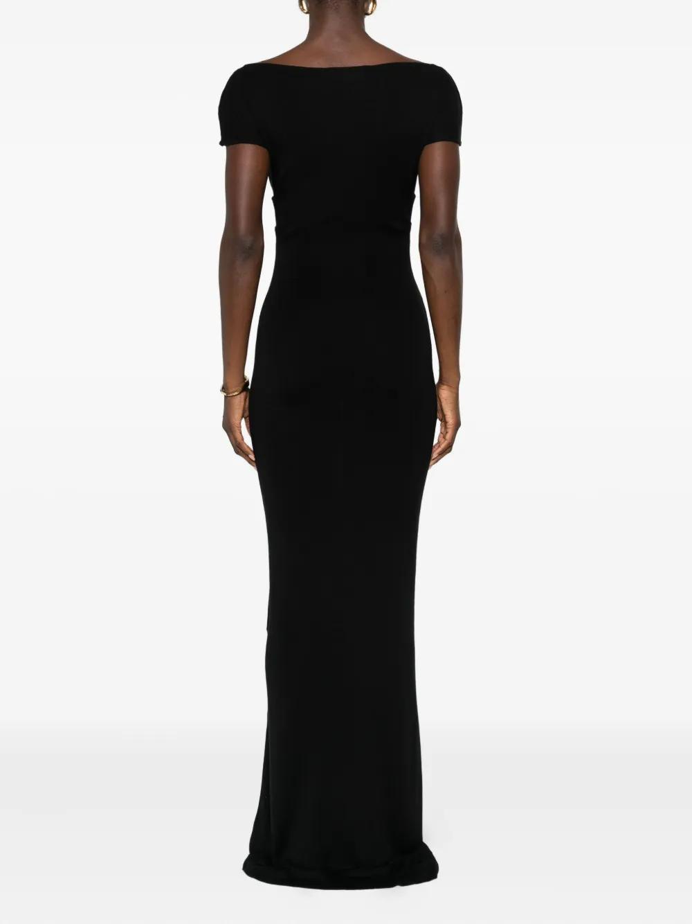 - Dopasowany fason. - Model o długości maxi. - Model z gorsetem. - Z tyłu ozdobne rozcięcie. - Wycięcie na plecach. - Z tyłu kryte zapięcie na suwak. - Gruba, elastyczna tkanina. - Długość: 148 cm. - Szerokość pod pachami: 33 cm. - Wymiary podane dla rozmiaru: 36.