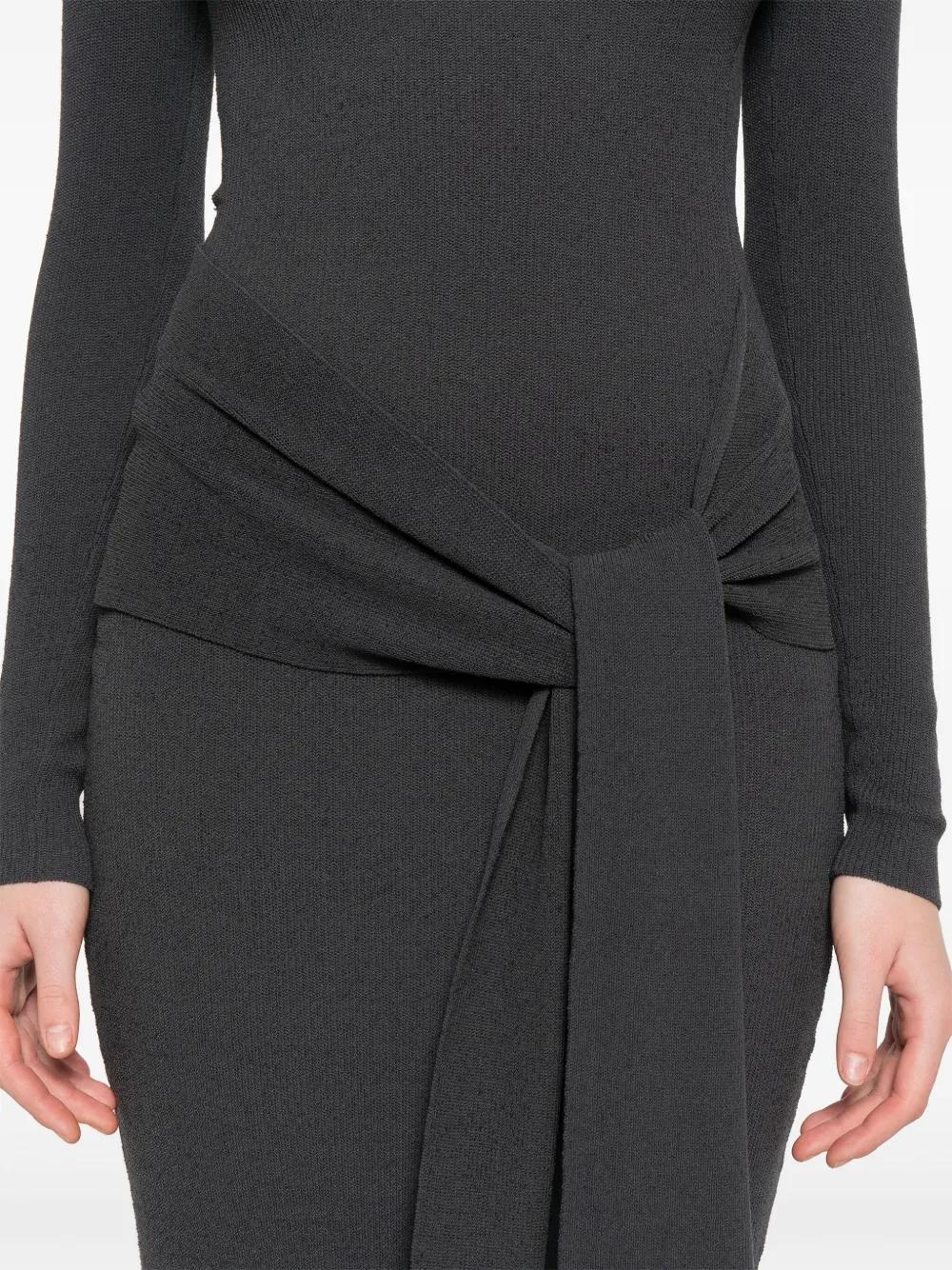 medium grey stretch-jersey mélange effect chain-link detailing mock neck keyhole neck open back A-line skirt handkerchief hem ankle-length