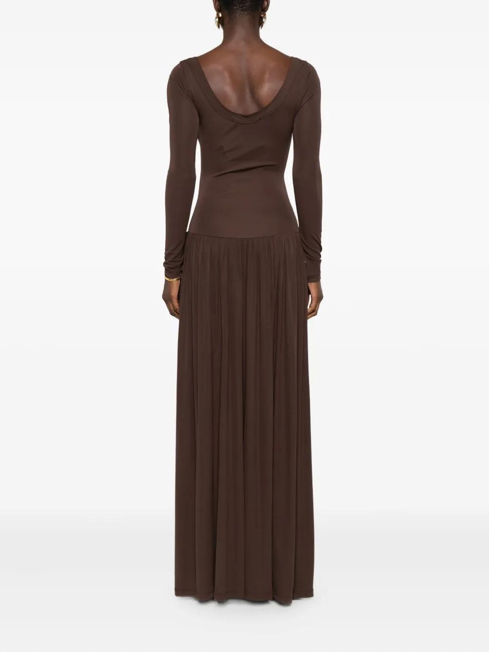 beige sequin embellishment long sleeves maxi length semi sheer construction round neck close-fitting