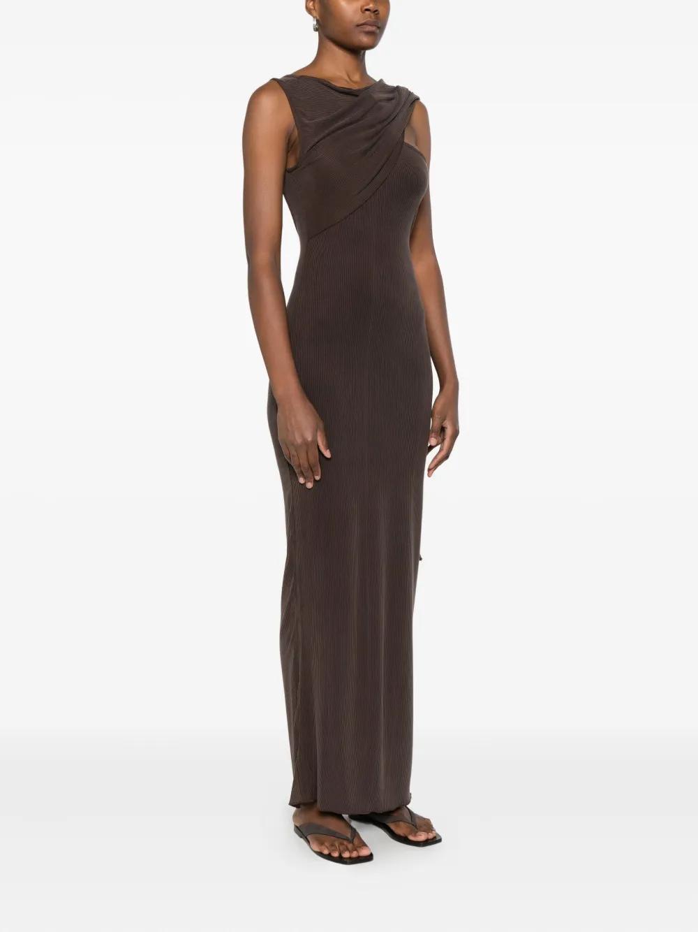 Aya Muse one-shoulder fine-ribbed maxi dress - Brown