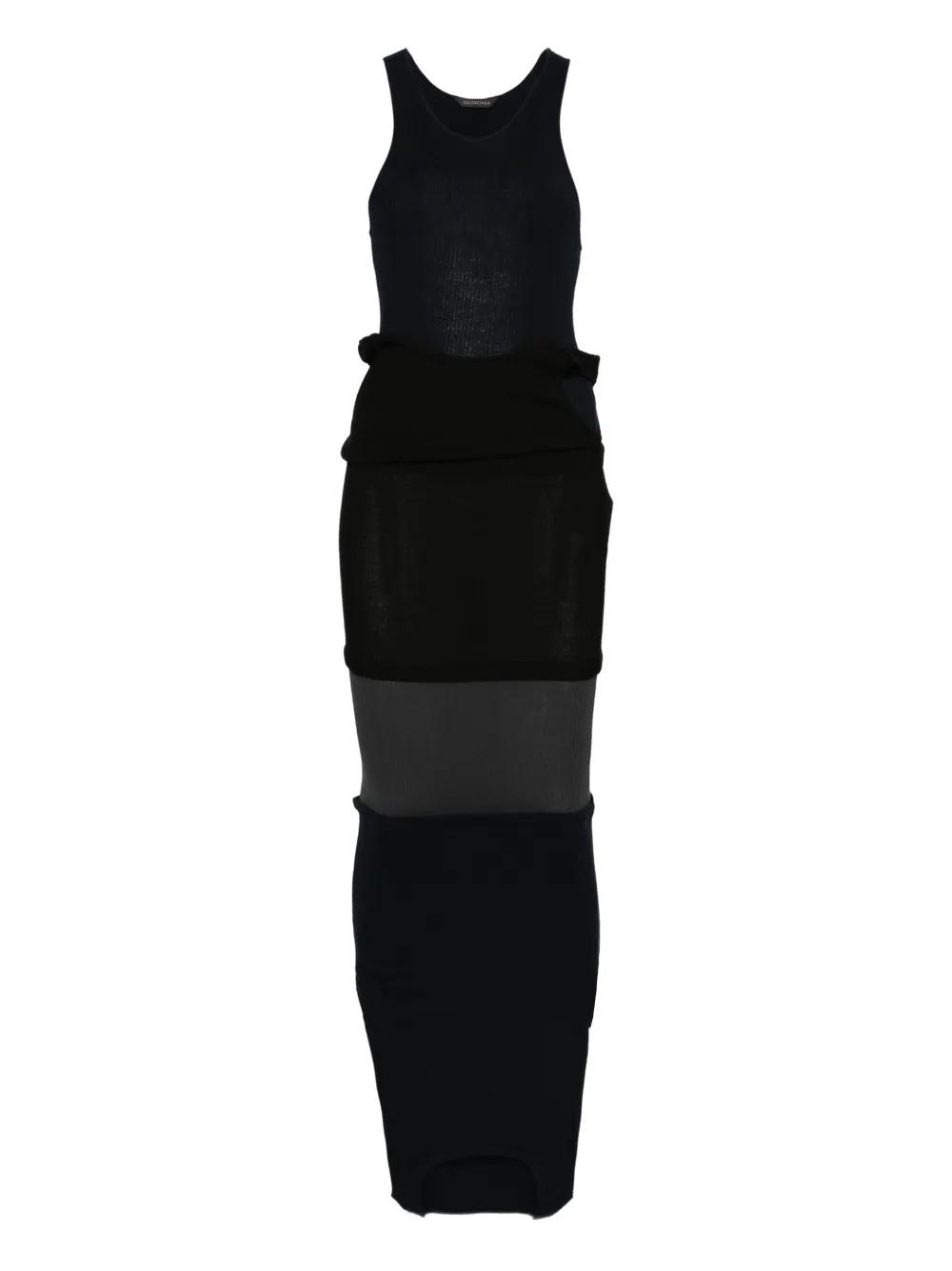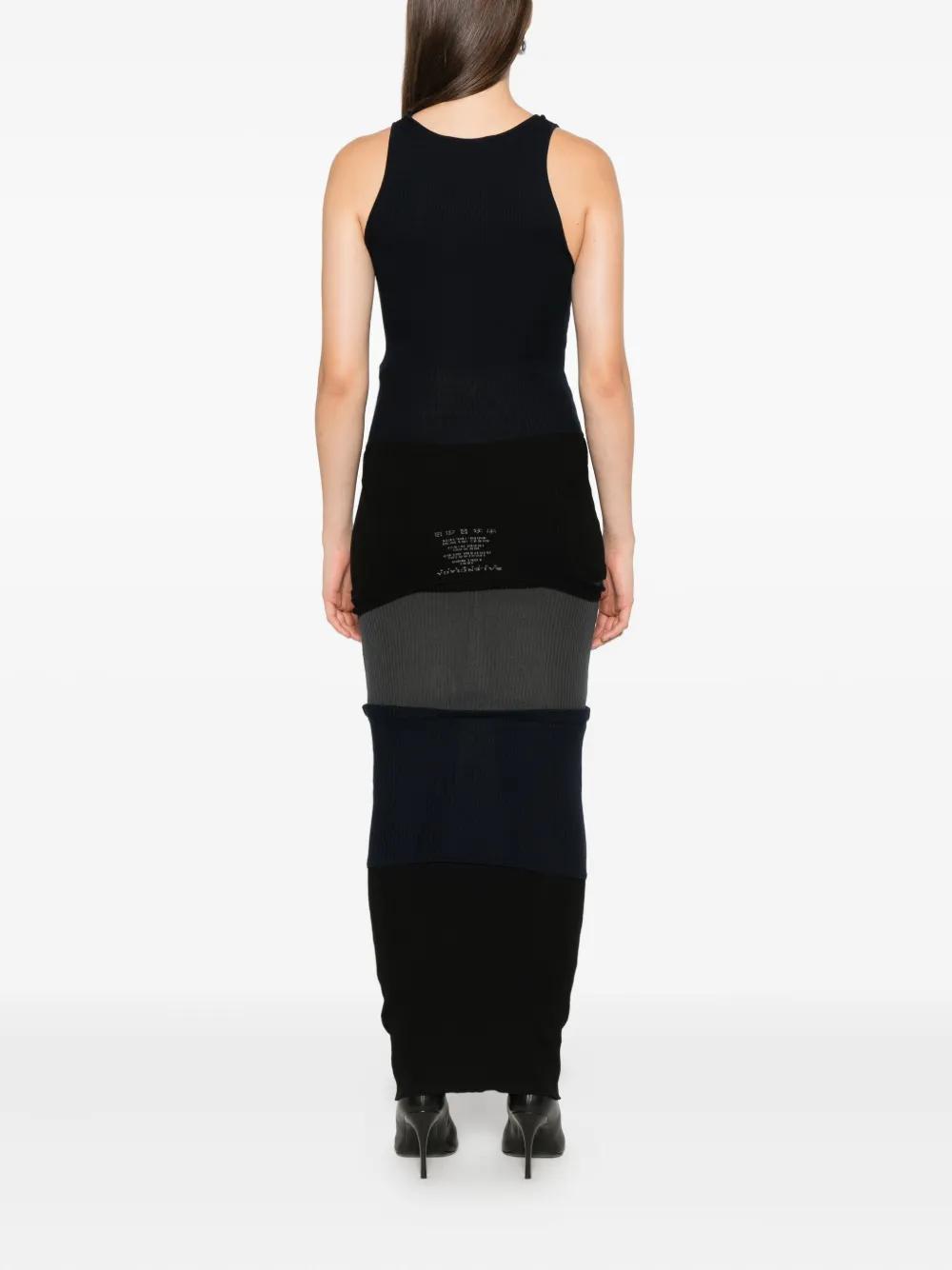 black/blue jersey texture colour-block design concealed side zip fastening asymmetric neck sleeveless twisted shoulder strap cut-out detailing partial lining asymmetric hem long length