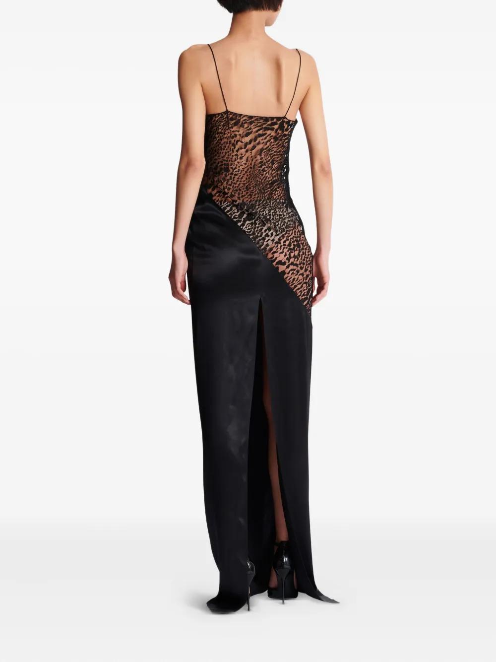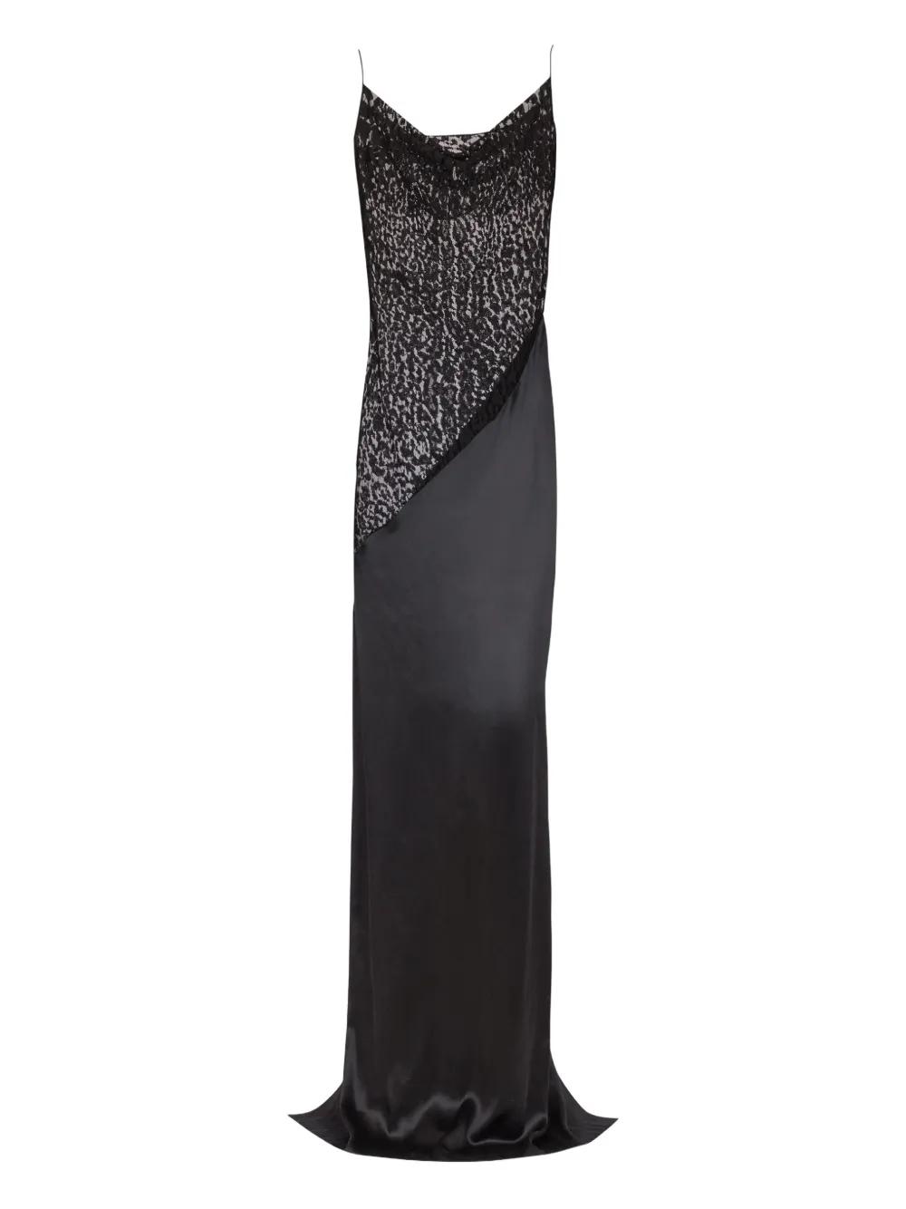 black concealed side zip fastening thin shoulder straps cowl neck floor-length