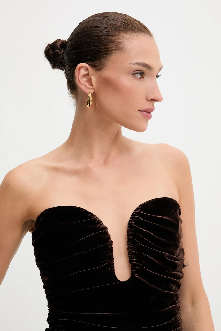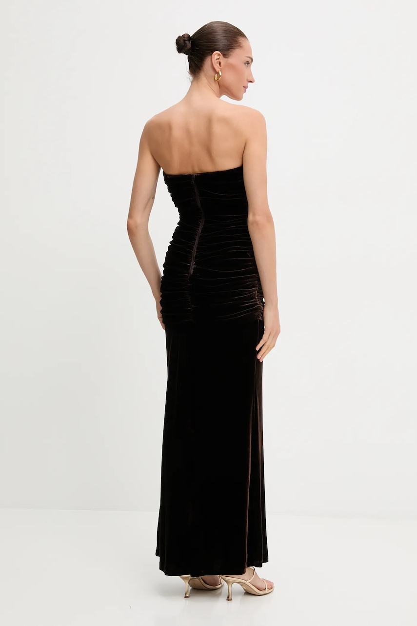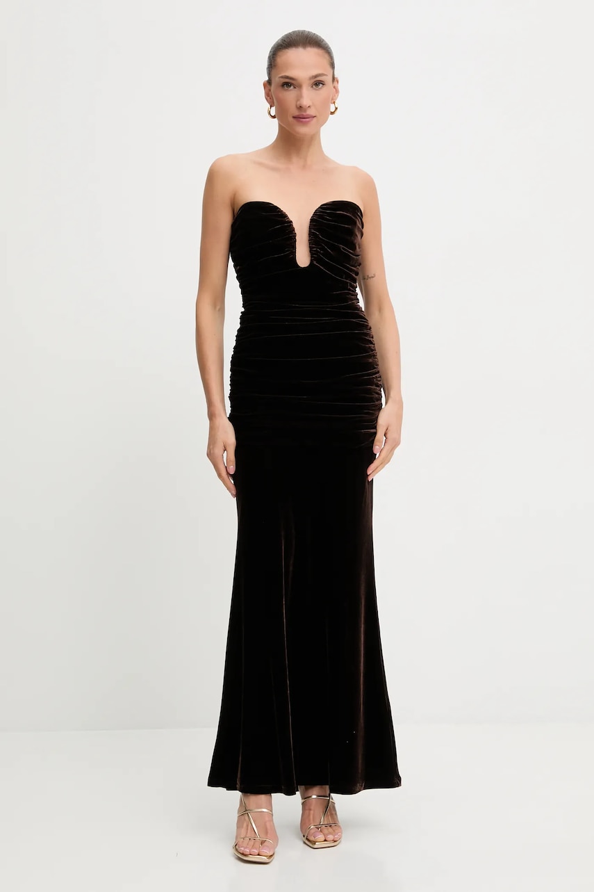 Bardot sukienka ELVIRA kolor brązowy maxi dopasowana 59692DB