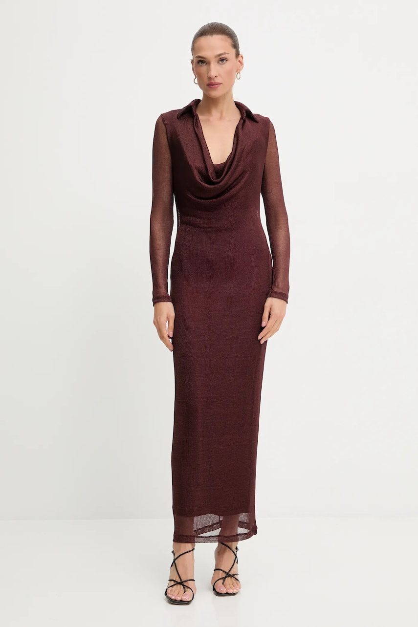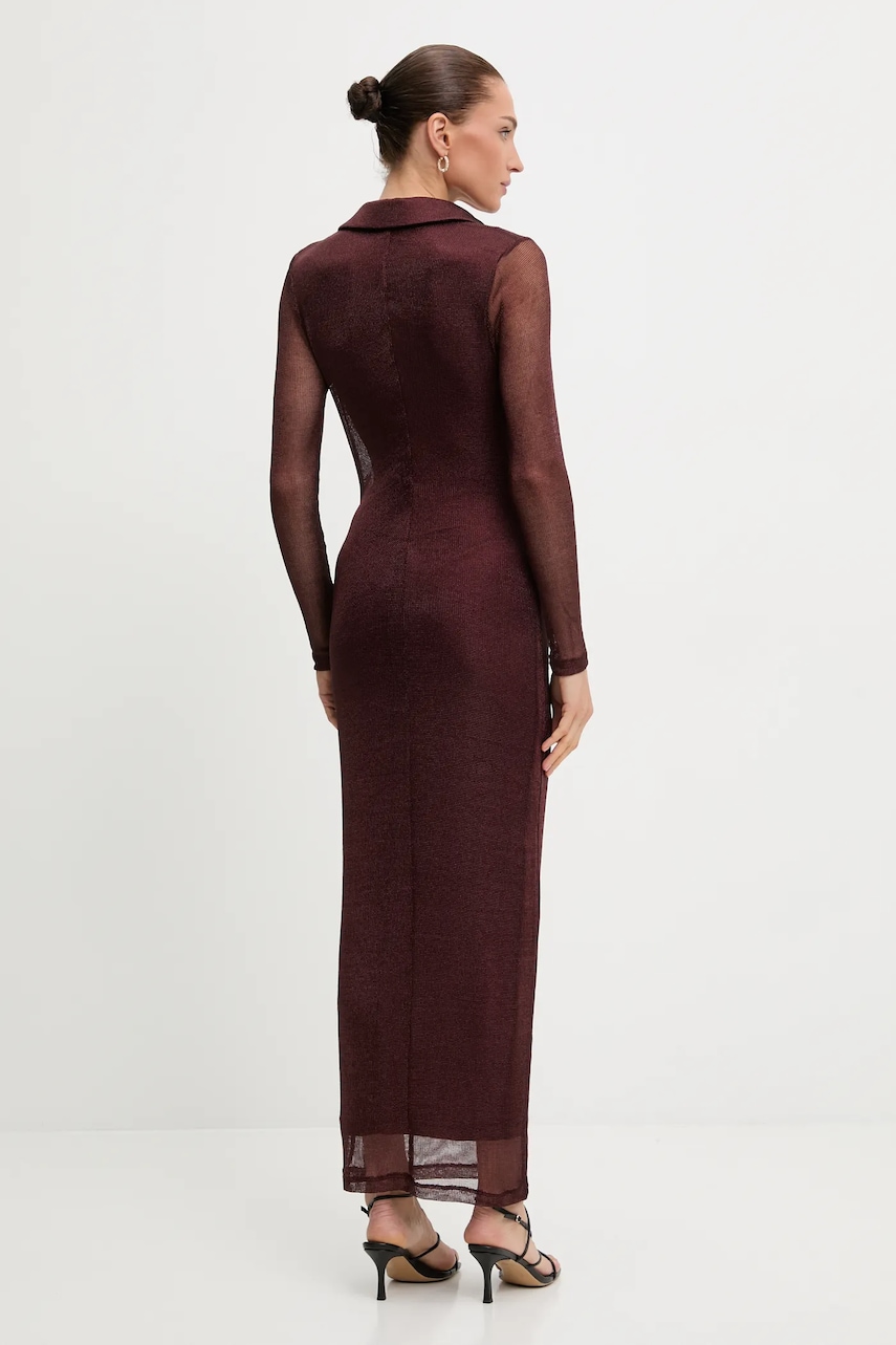 Bardot sukienka kolor bordowy maxi dopasowana 59613DB1