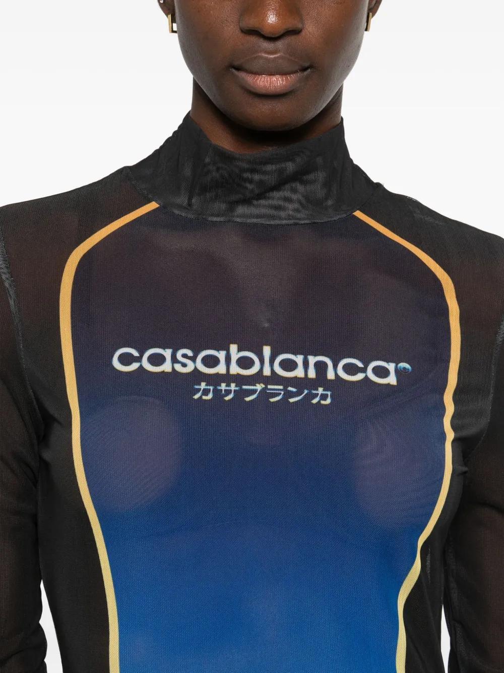 black gradient effect long sleeves high neck semi-sheer construction contrast trim