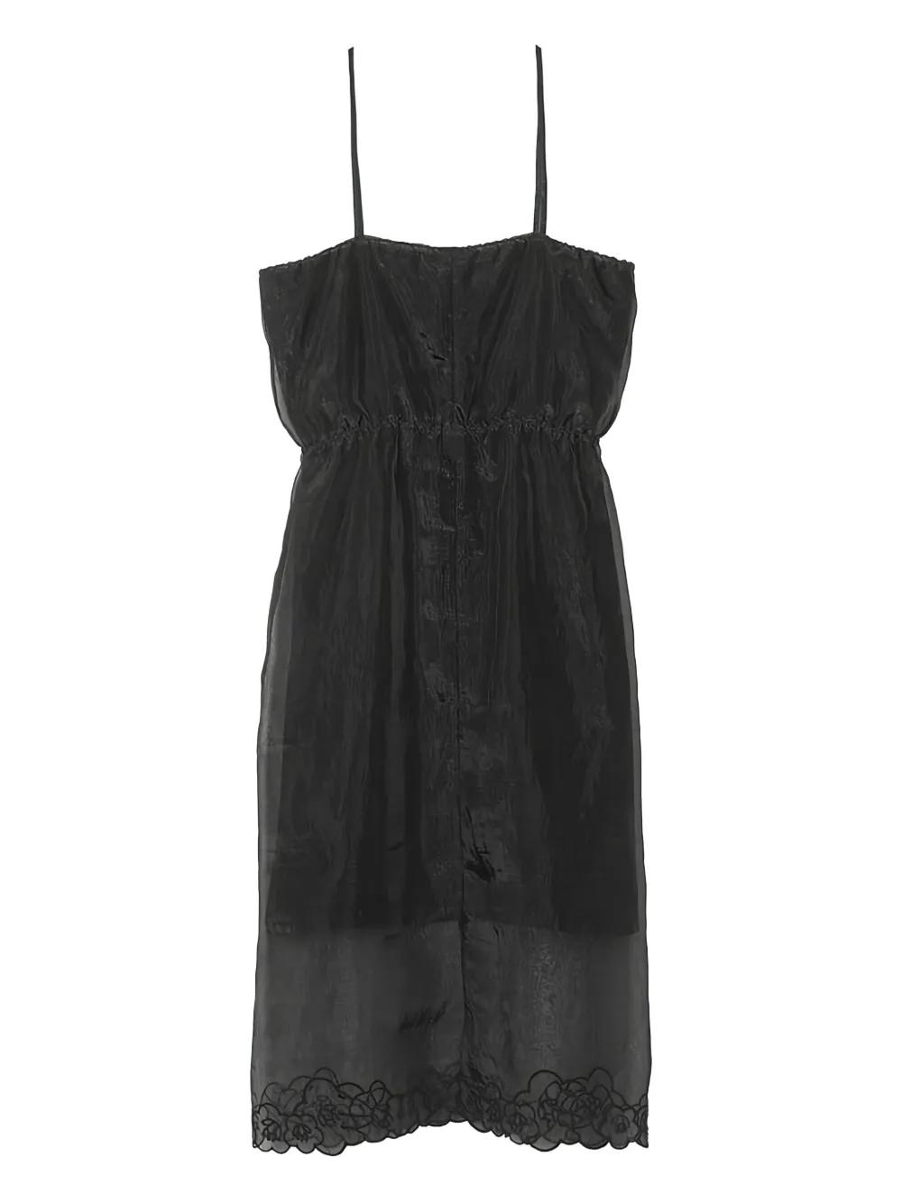 black spaghetti straps drawstring fastening scalloped hem button detail sheer finish