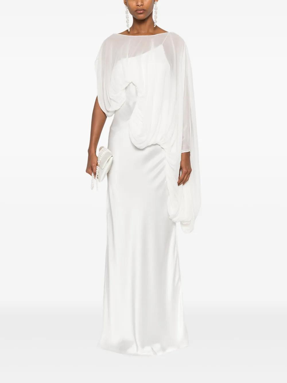 white side zip fastening semi-sheer panels ruched detailing boat neck
