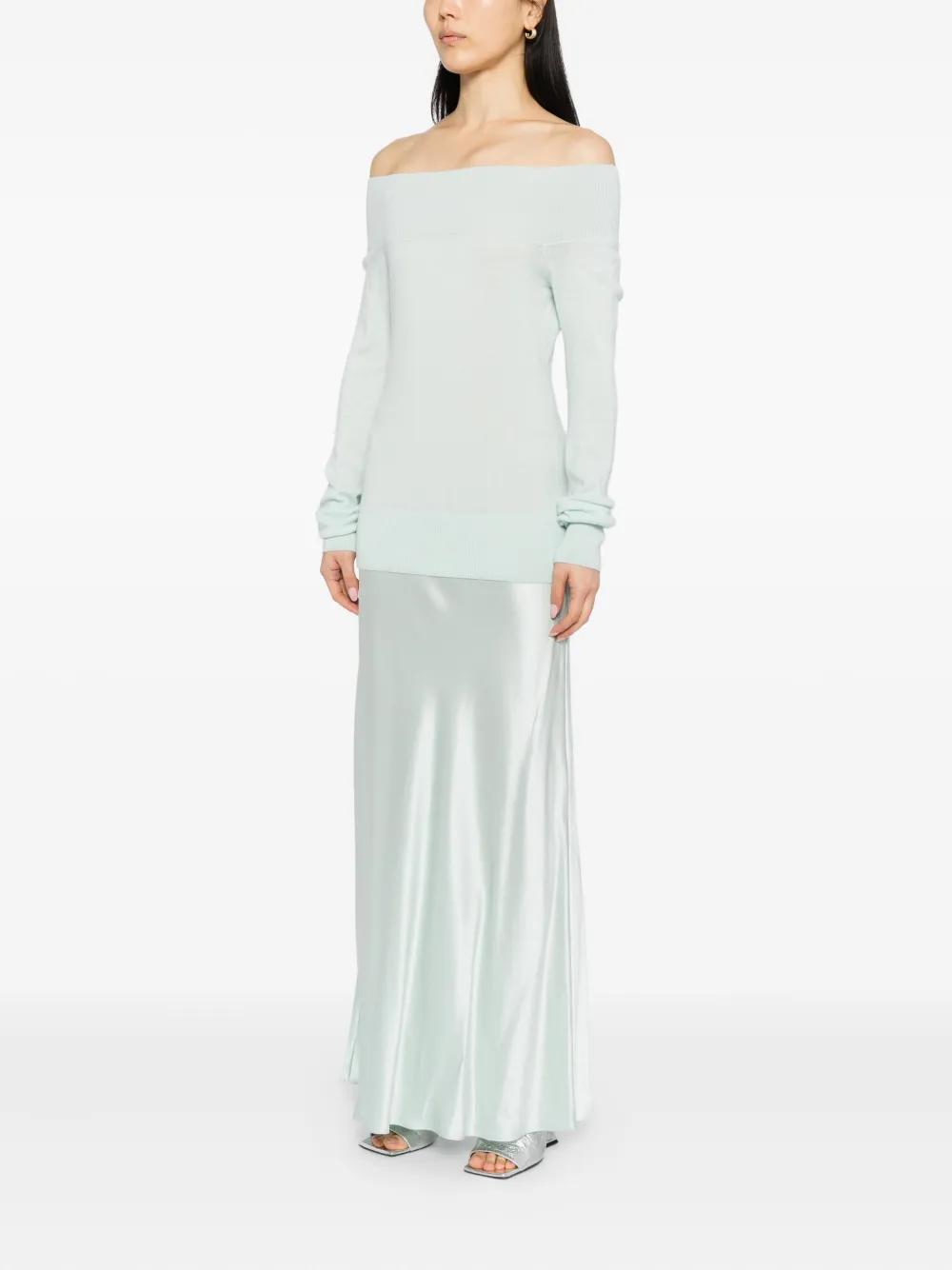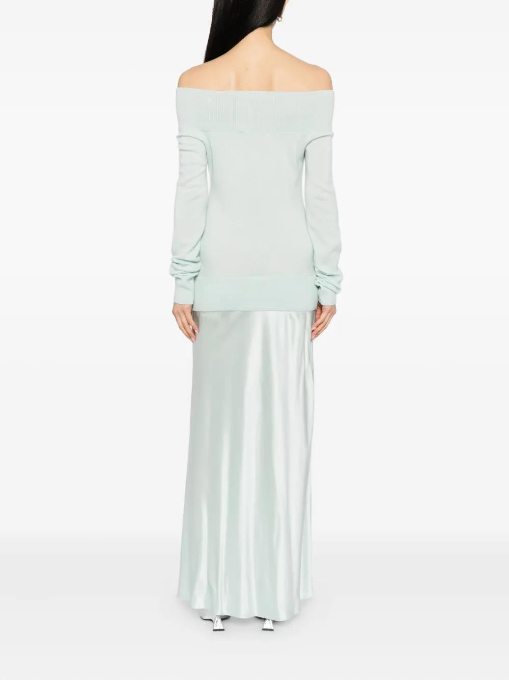 - Dopasowany fason. - Model o długości maxi. - Model z gorsetem. - Z tyłu ozdobne rozcięcie. - Wycięcie na plecach. - Z tyłu kryte zapięcie na suwak. - Gruba, elastyczna tkanina. - Długość: 148 cm. - Szerokość pod pachami: 33 cm. - Wymiary podane dla rozmiaru: 36.