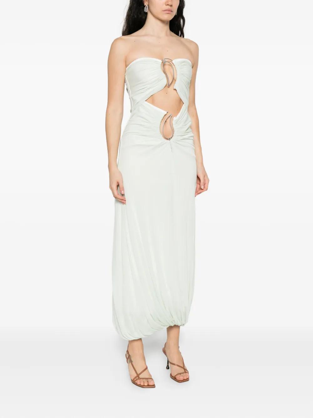 mint green off-shoulder strapless cut-out detailing draped detailing