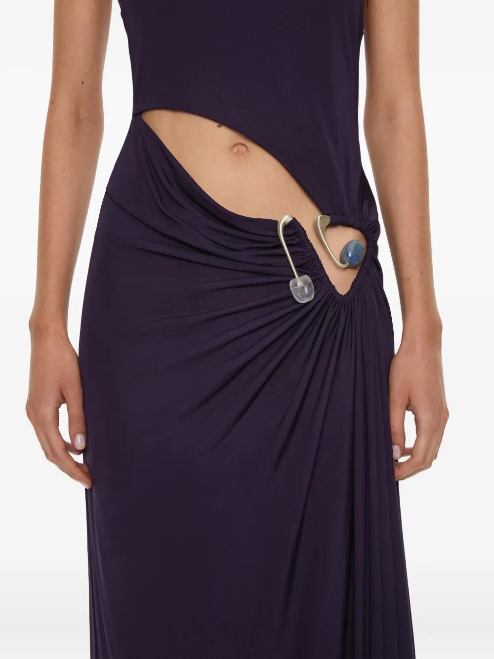 purple asymmetric hem cut-out detail crystal embellishment sleeveless gathered detail