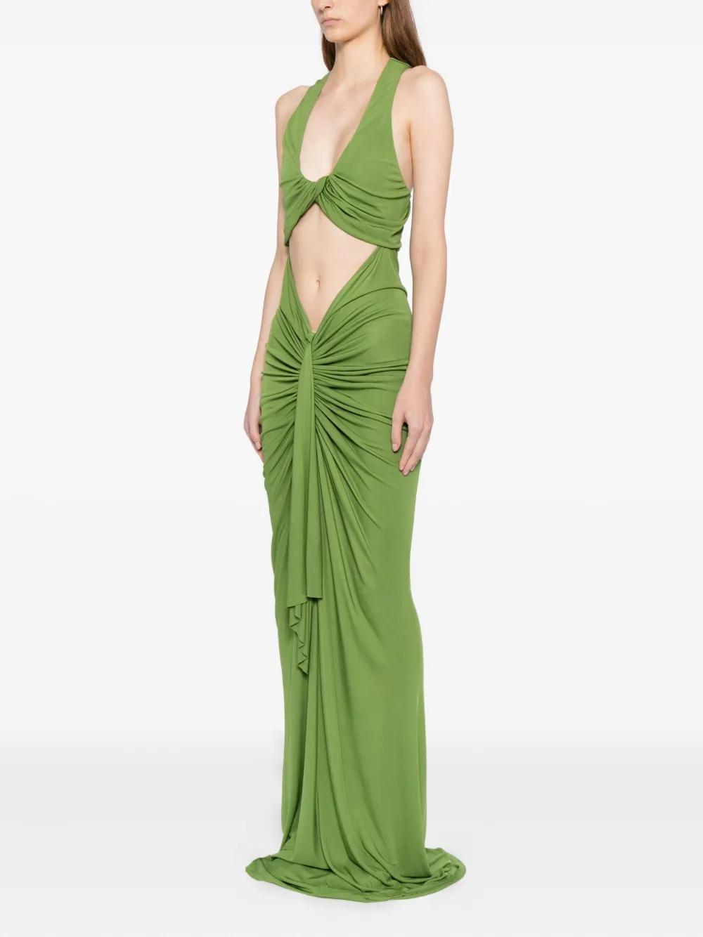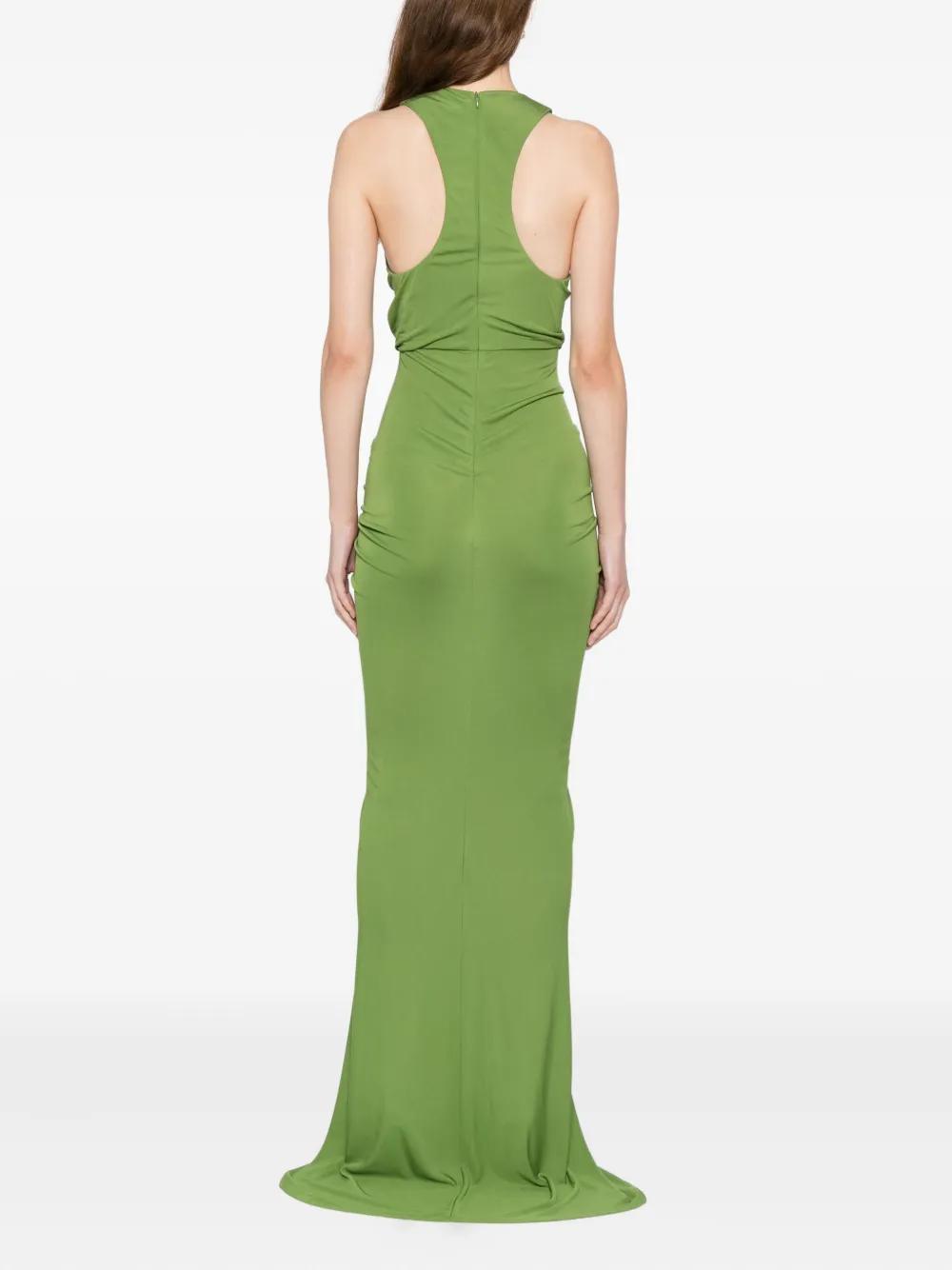 lime green concealed rear zip fastening plunging U-neck sleeveless cut-out detailing