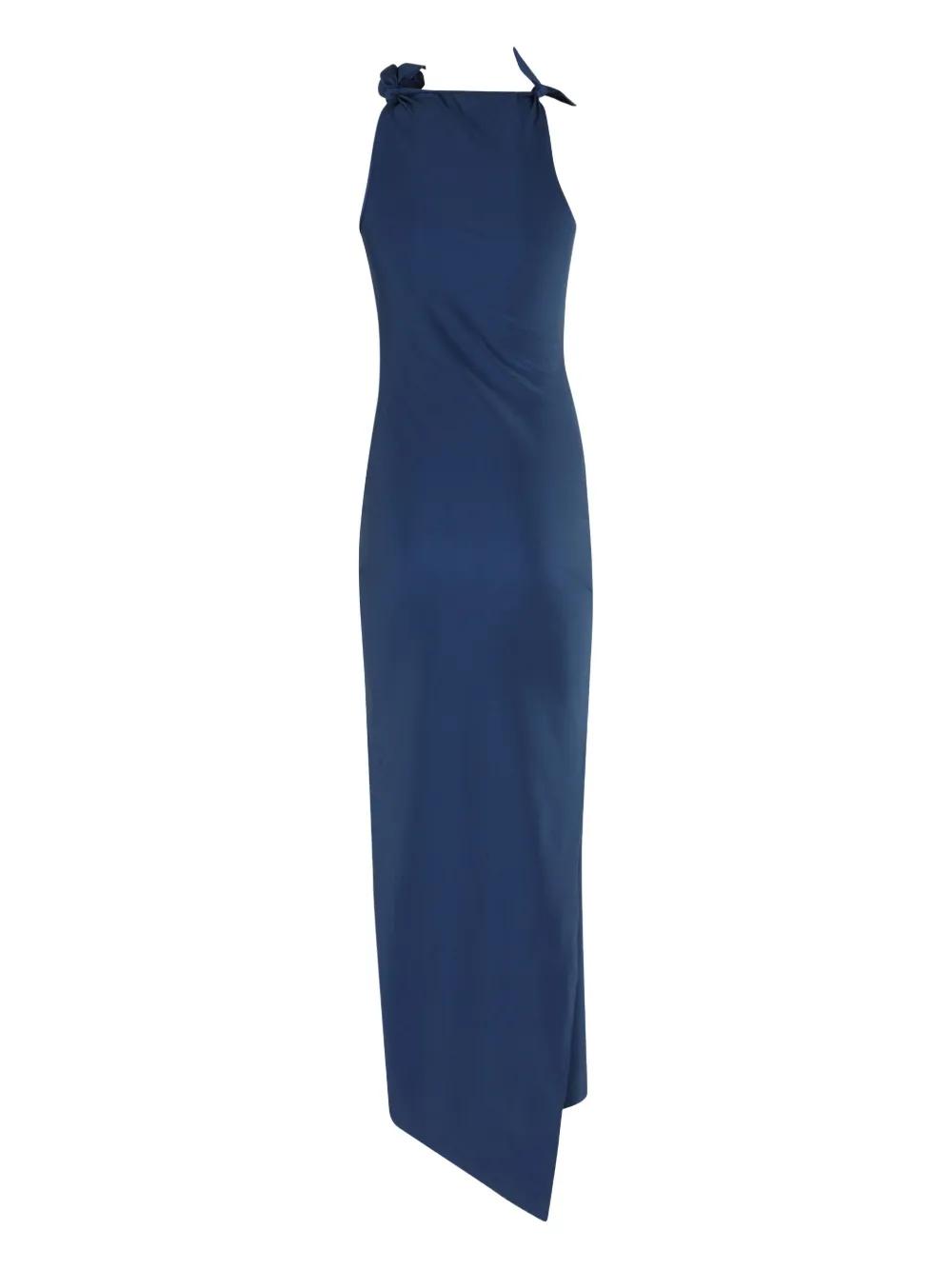 Coperni rose-embellished asymmetrical maxi dress - Blue