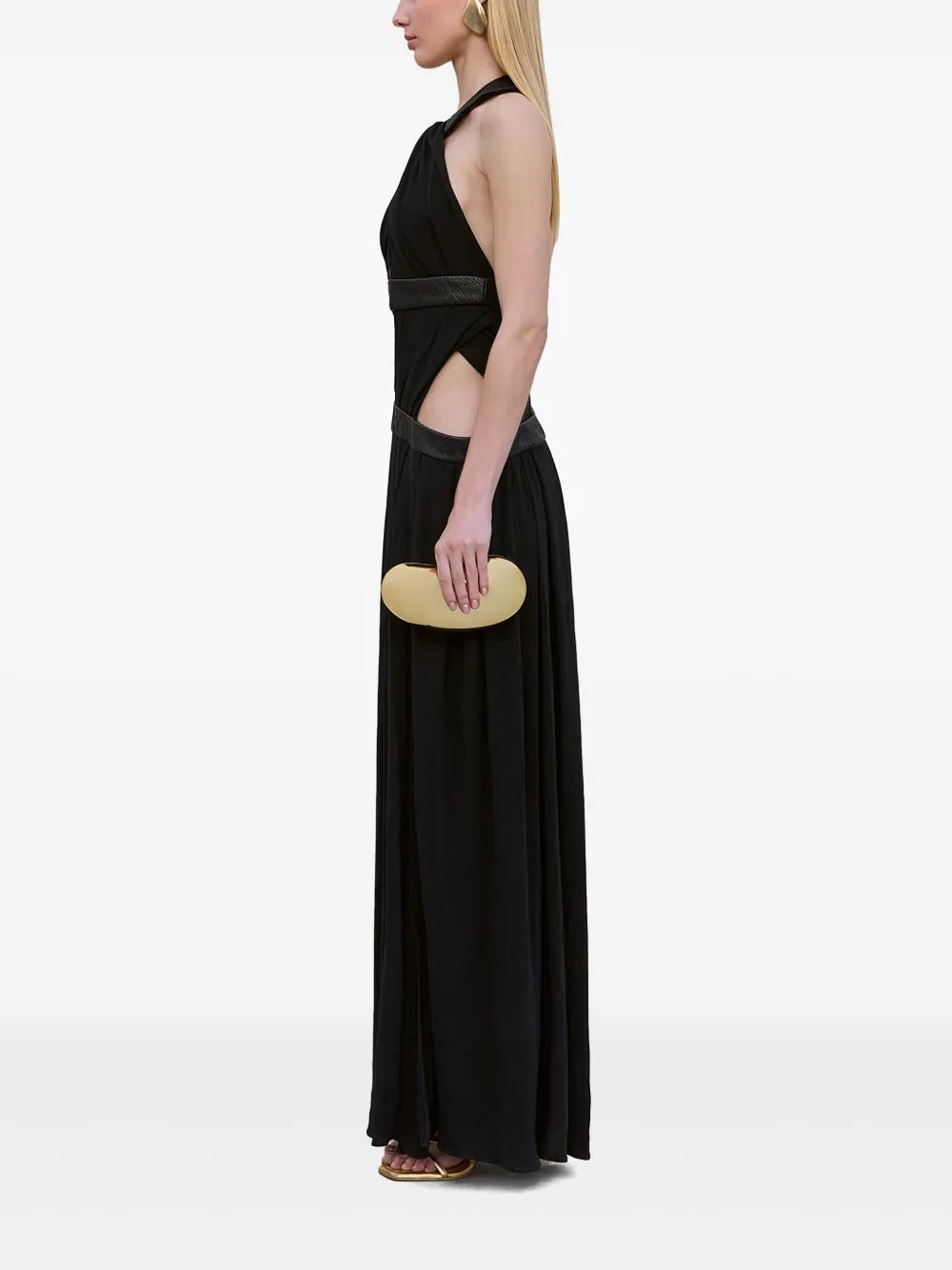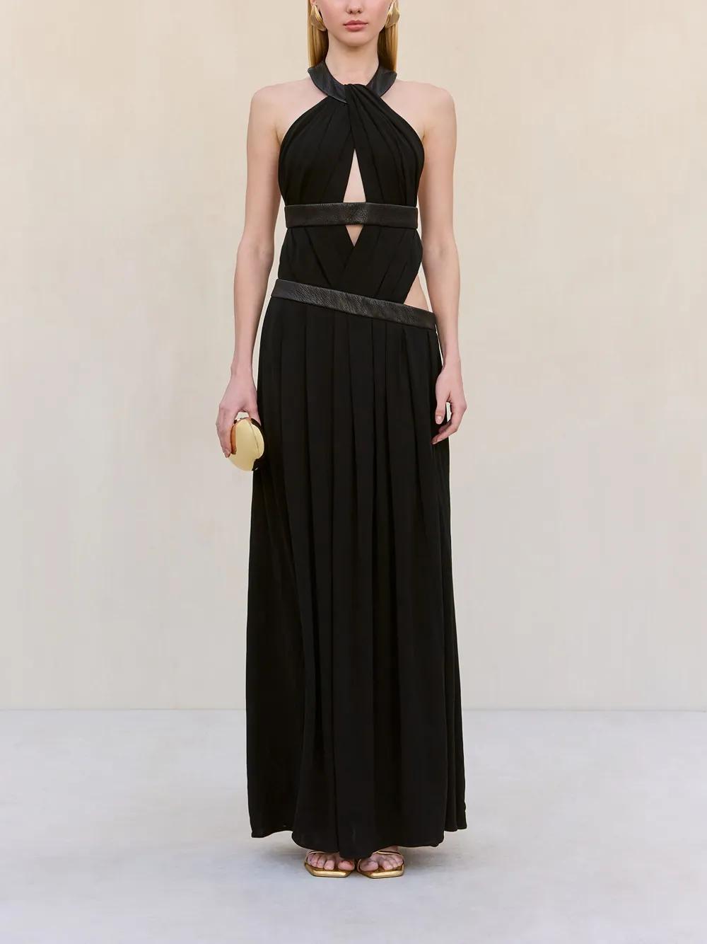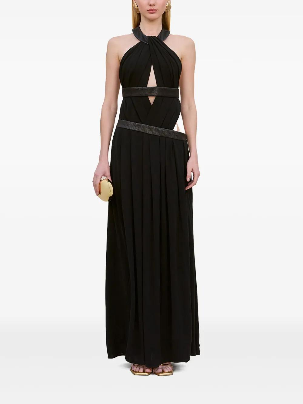 black concealed rear zip fastening halterneck cut-out detailing side slit