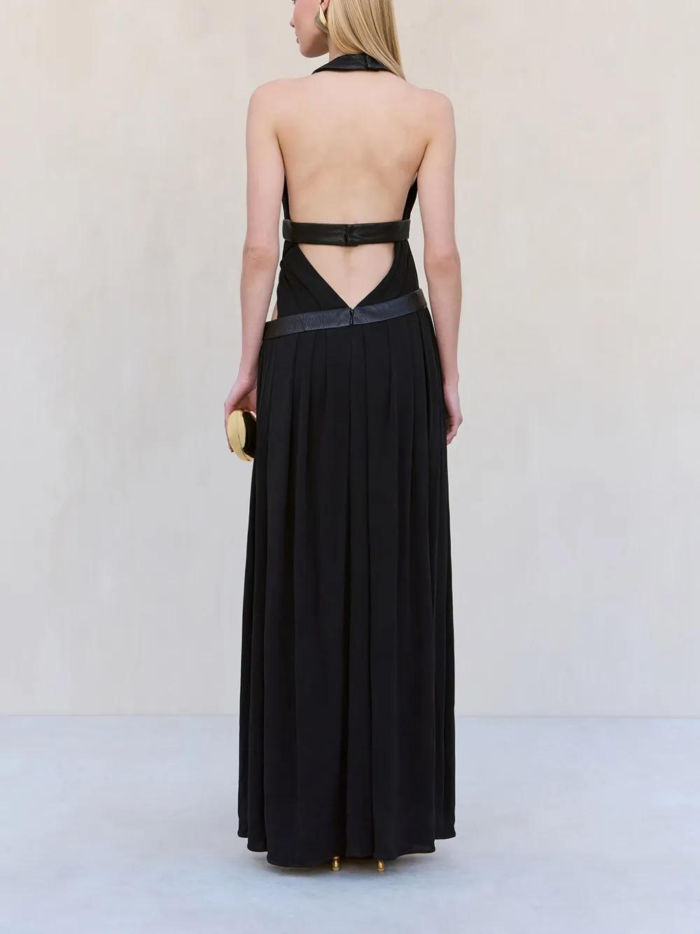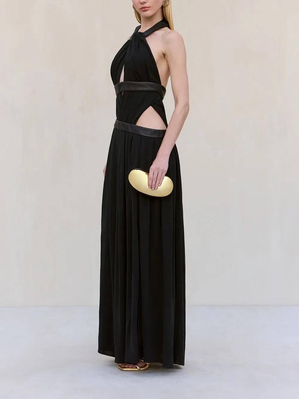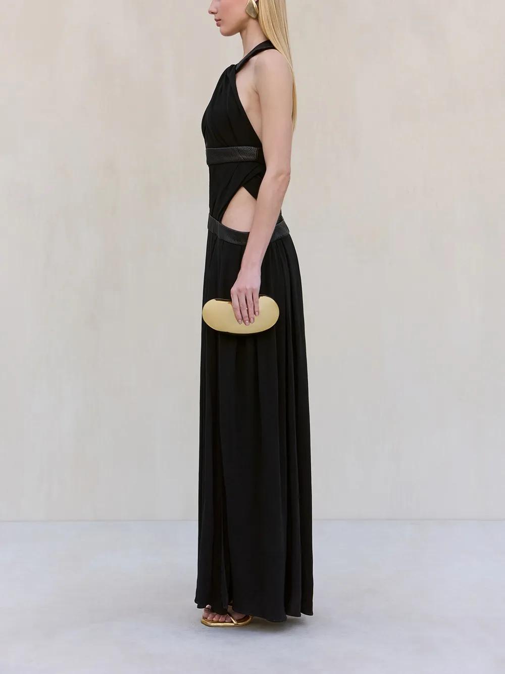 black concealed rear zip fastening halterneck cut-out detailing side slit
