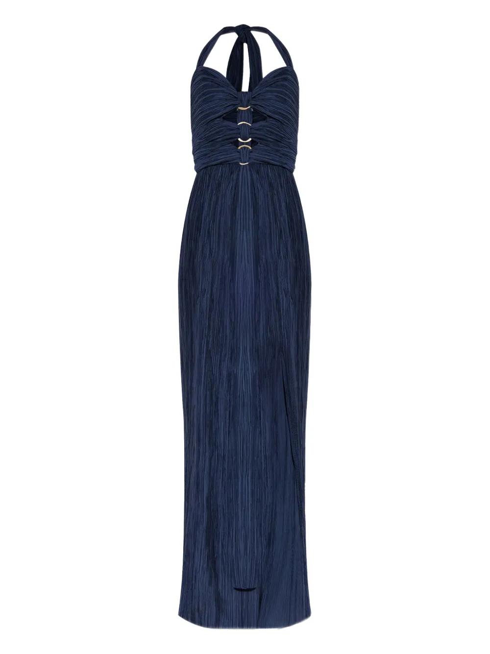 Cult Gaia Nailah pleated halter-neck ring-detail maxi dress - Blue