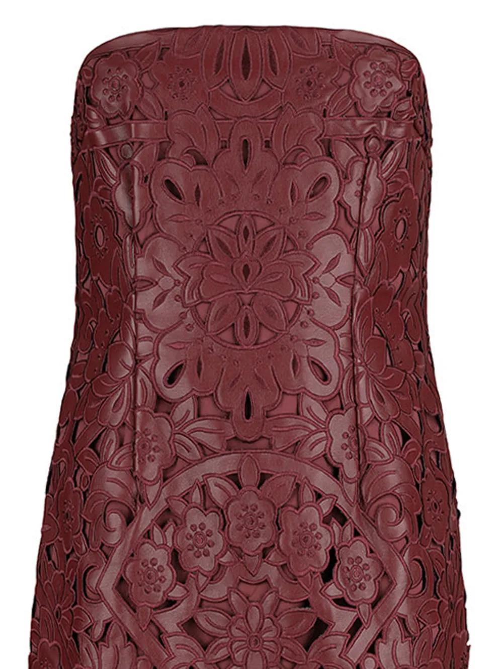red floral pattern cutout detail strapless maxi length