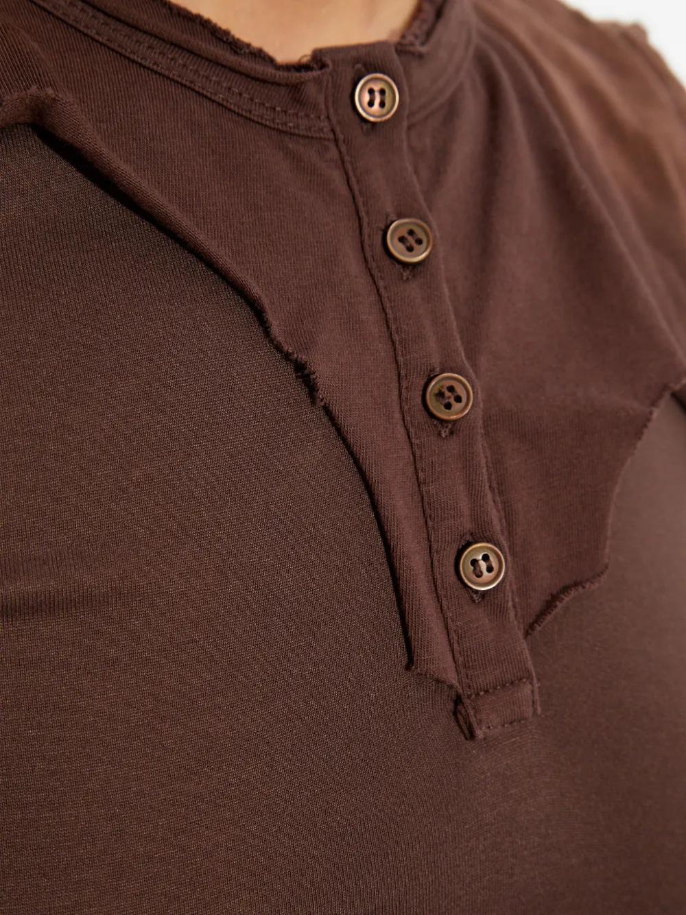 brown cotton front button placket short sleeves round neck maxi length