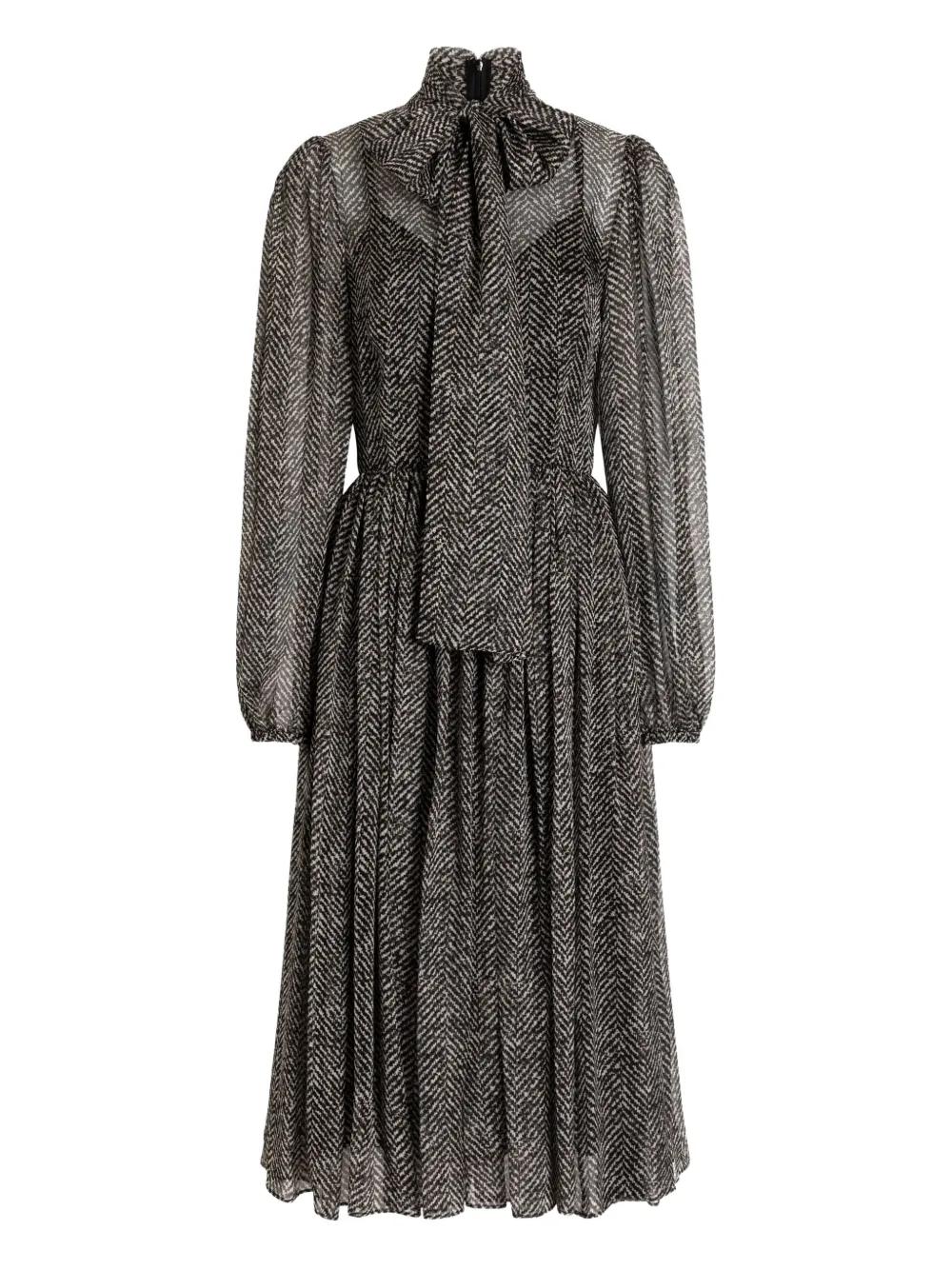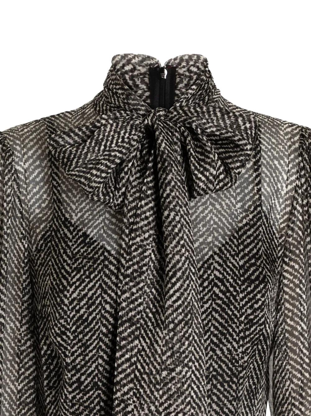 black and white chevron pattern tie detail long sleeves high neck rear zip fastening