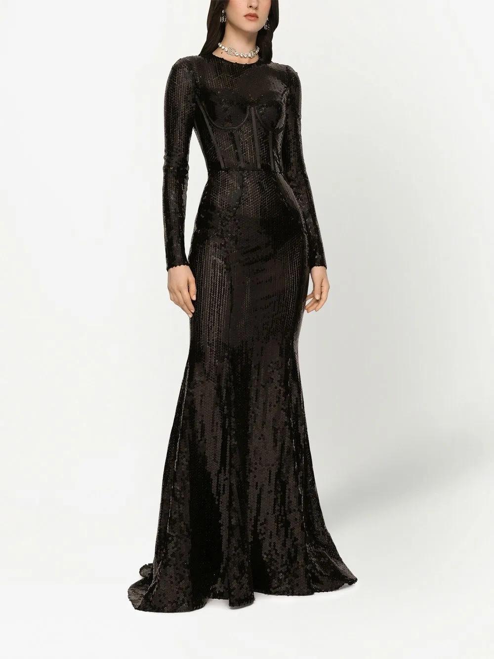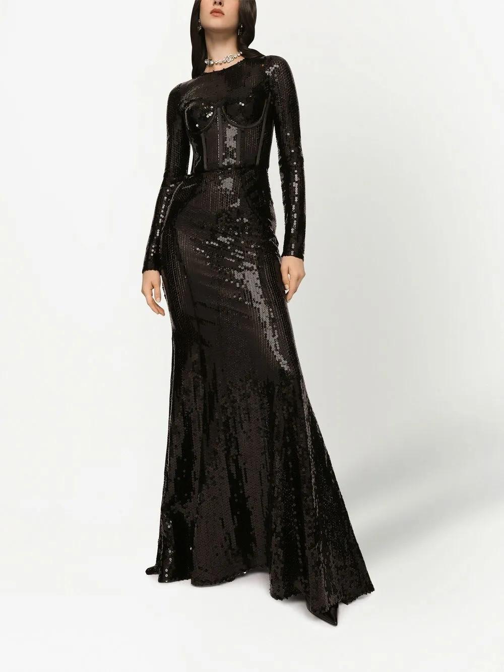 Dolce & Gabbana corset-detail sequinned gown - Black