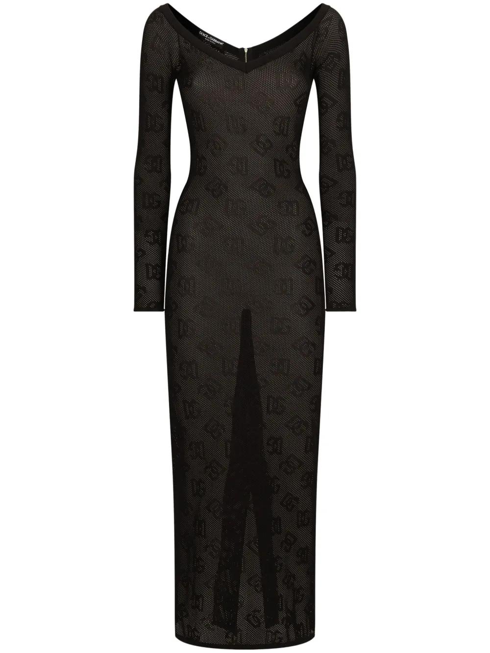 Dolce & Gabbana logo-jacquard V-neck maxi dress - Black