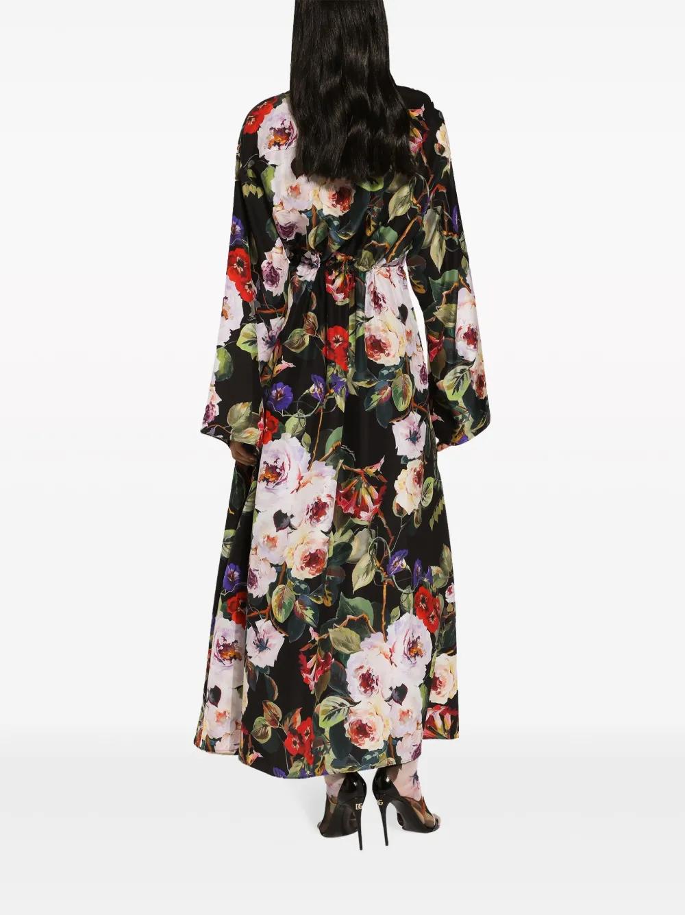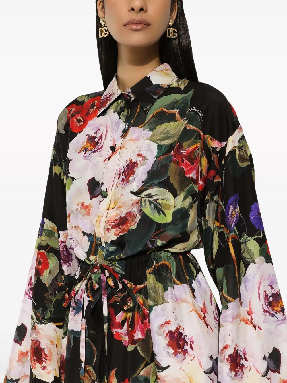 Dolce & Gabbana Rose-print silk shirtdress - Black