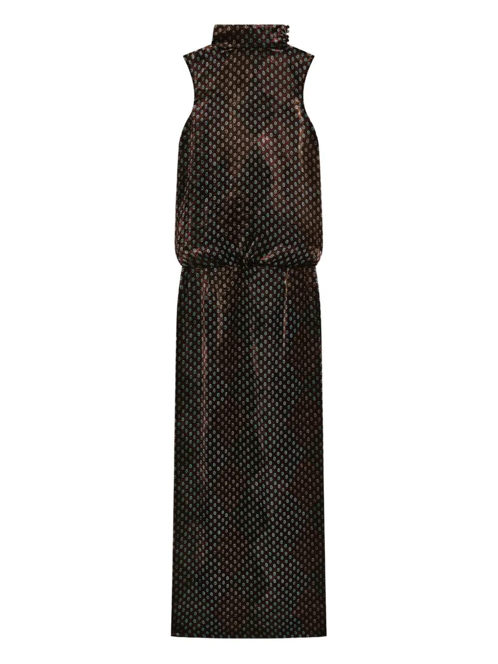 khaki sleeveless high neck all-over print maxi length