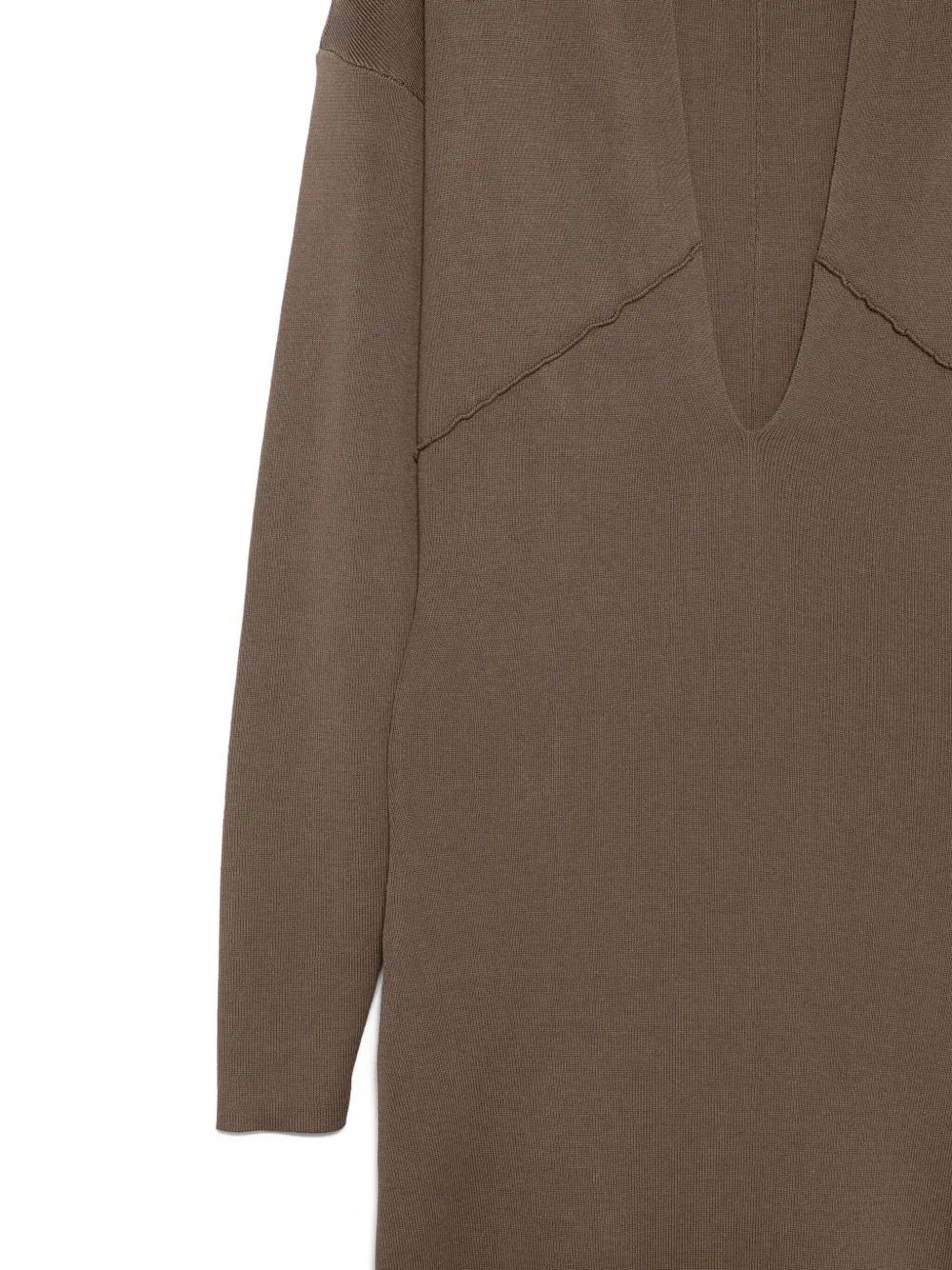 brown V-neck long sleeves panelled construction ribbed knit straight hem
