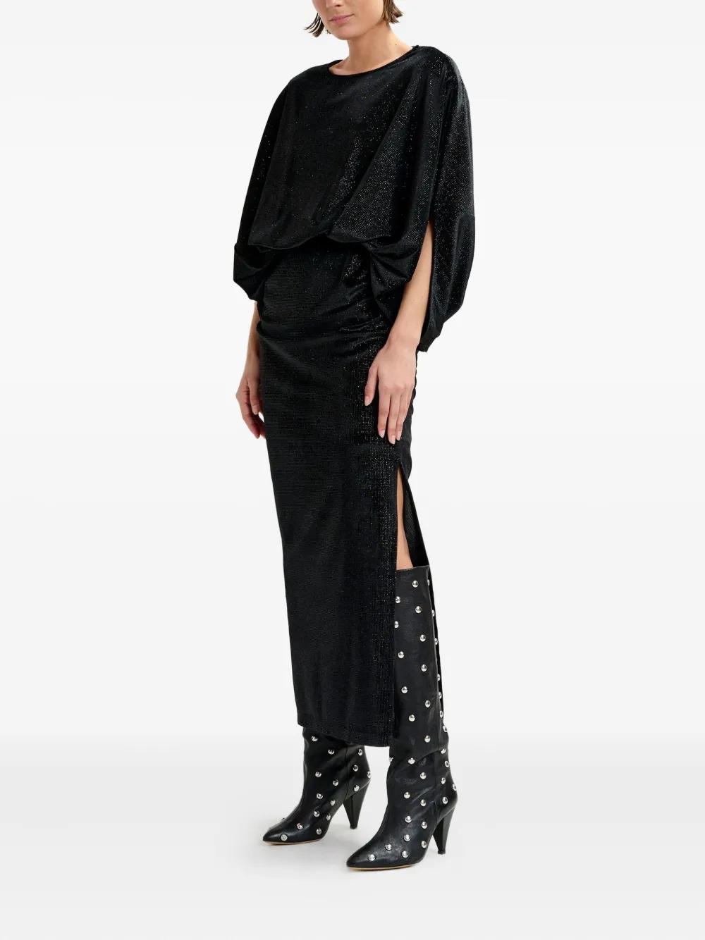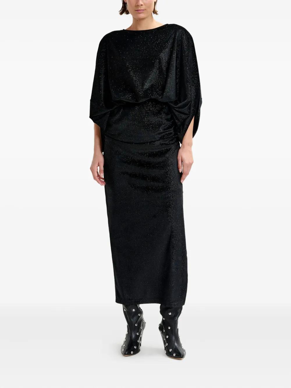 black subtle sparkles elasticated waistband draped sleeves side split