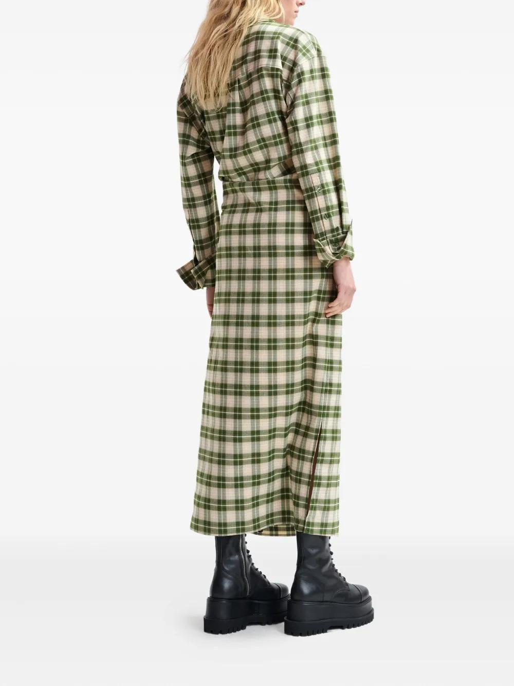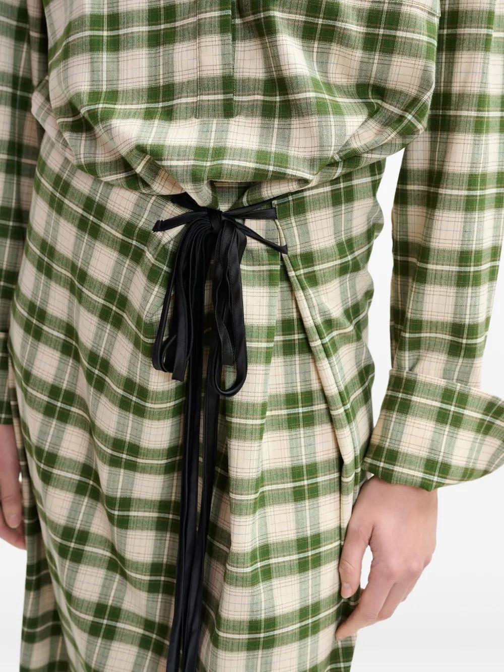 green checked pattern rhinestone embellishment chest pocket button placket drawstring waist