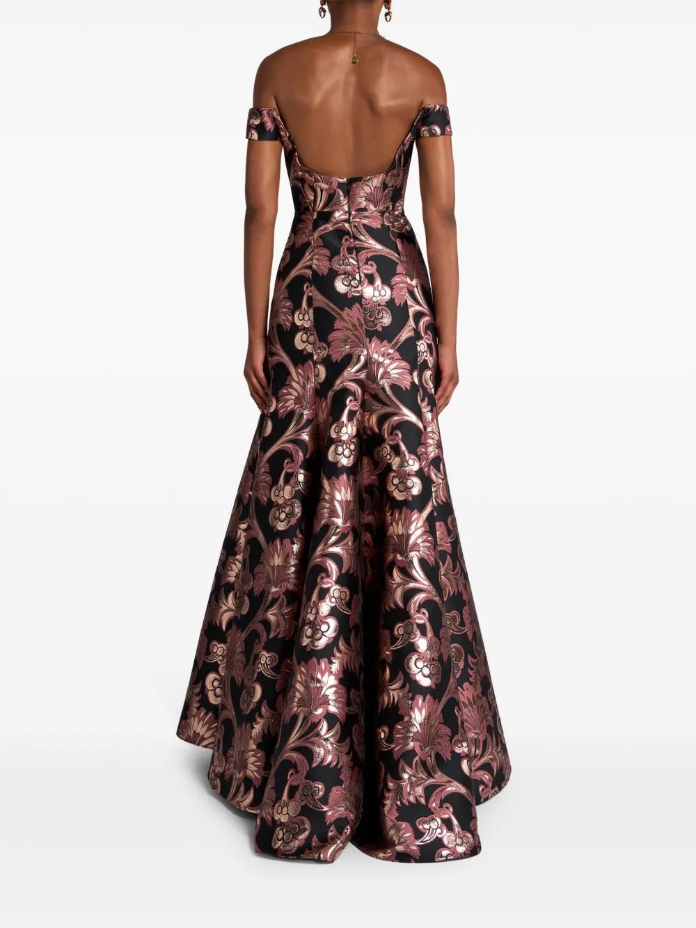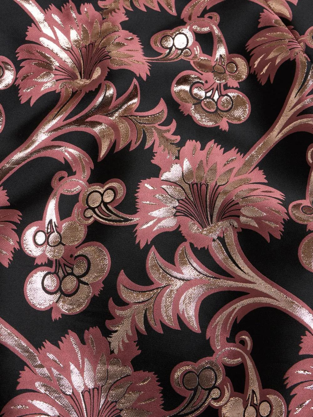 pink/multicolor silk patterned jacquard patterned floral print off-shoulder pleat detailing open back