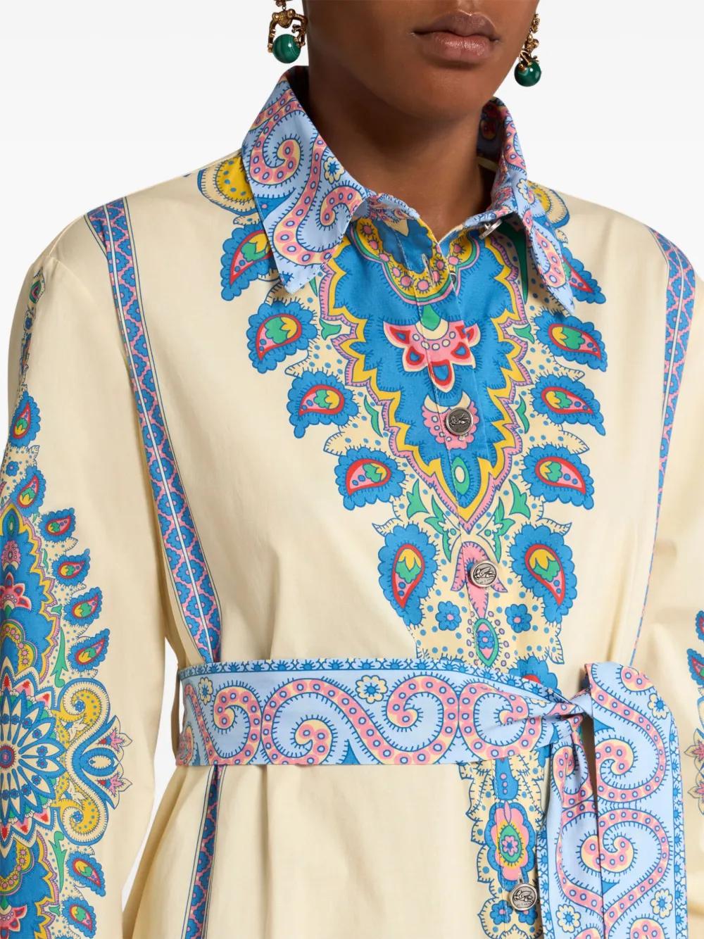 white front button fastening belted waist buttoned cuffs A-line skirt