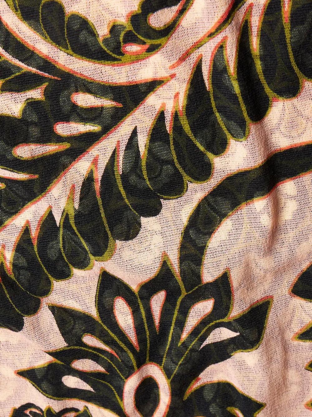 beige/multicolour tulle overlay paisley print V-neck half-length sleeves ankle-length straight hem
