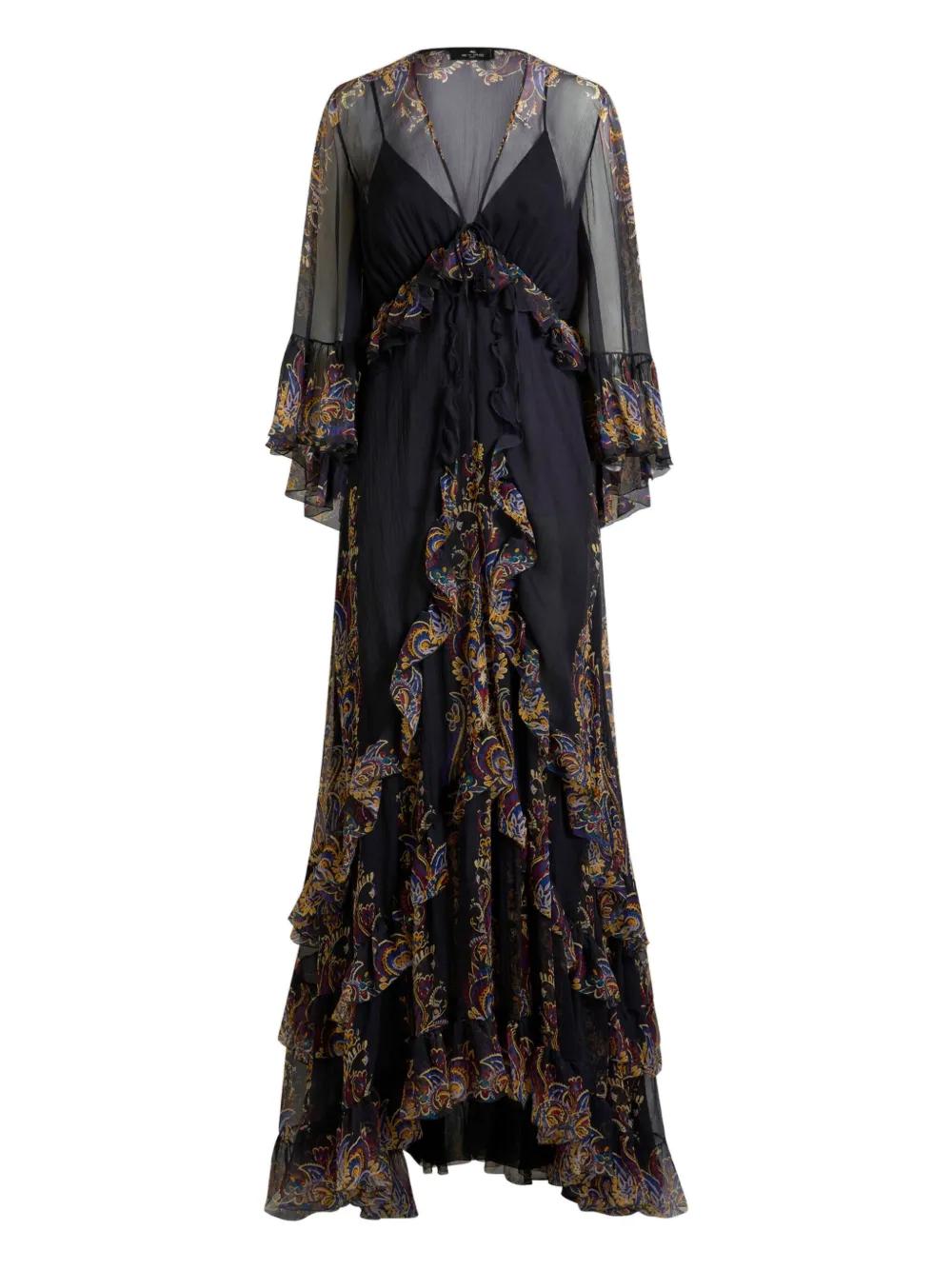 ETRO ruffled paisley foliage-print silk maxi dress - Black