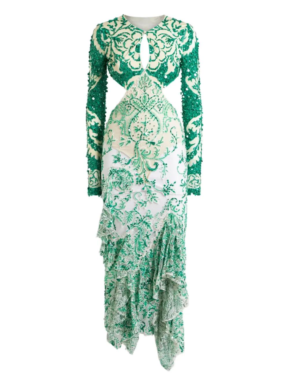 emerald green front button fastening round neck long sleeves cut-out detailing