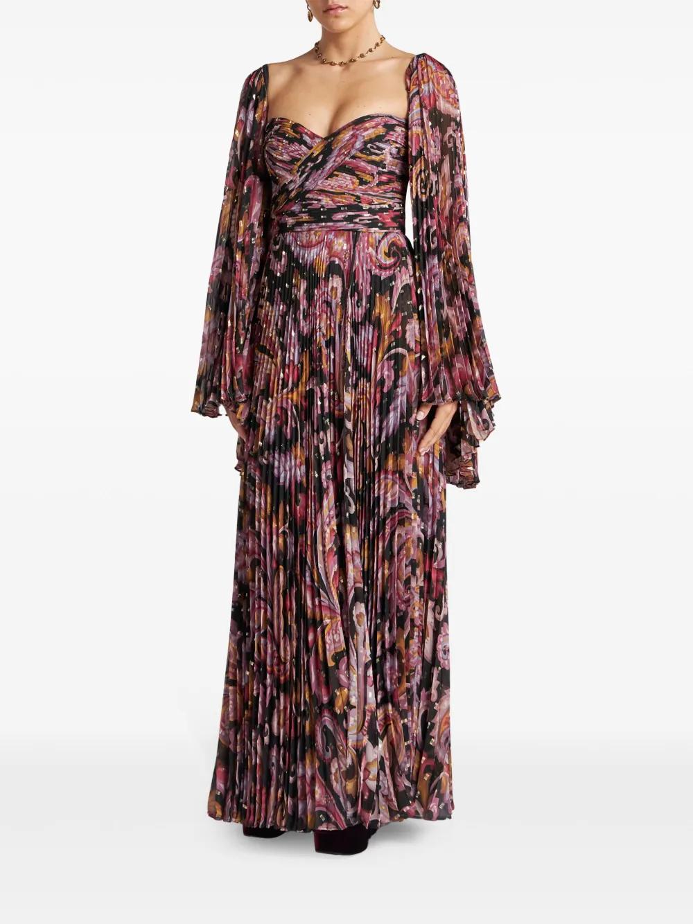 pink/multicolor silk fil-coupé effect all-over floral print pleat detailing long sleeves open back