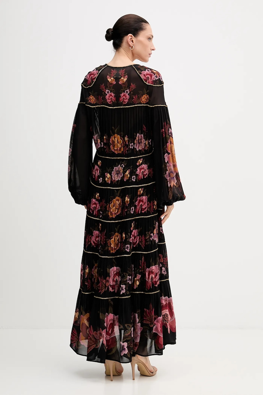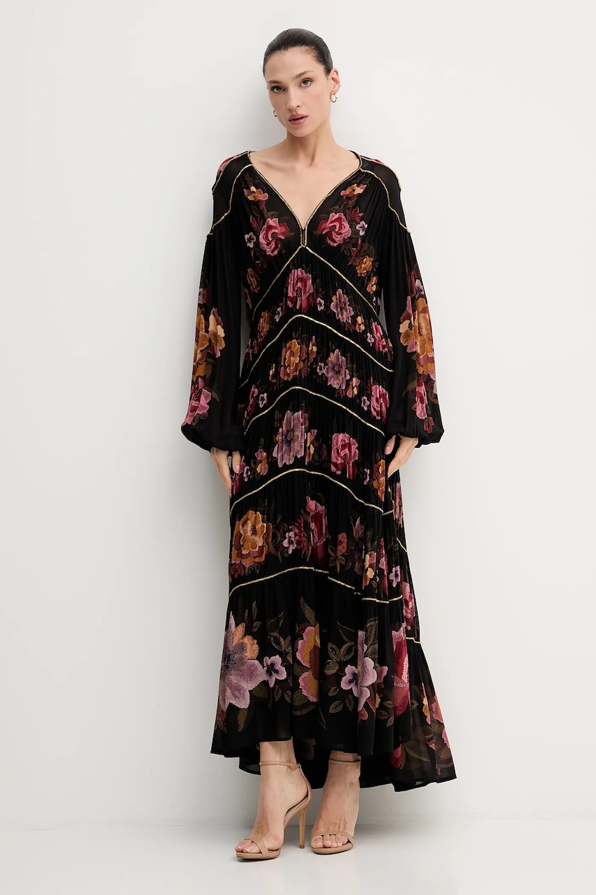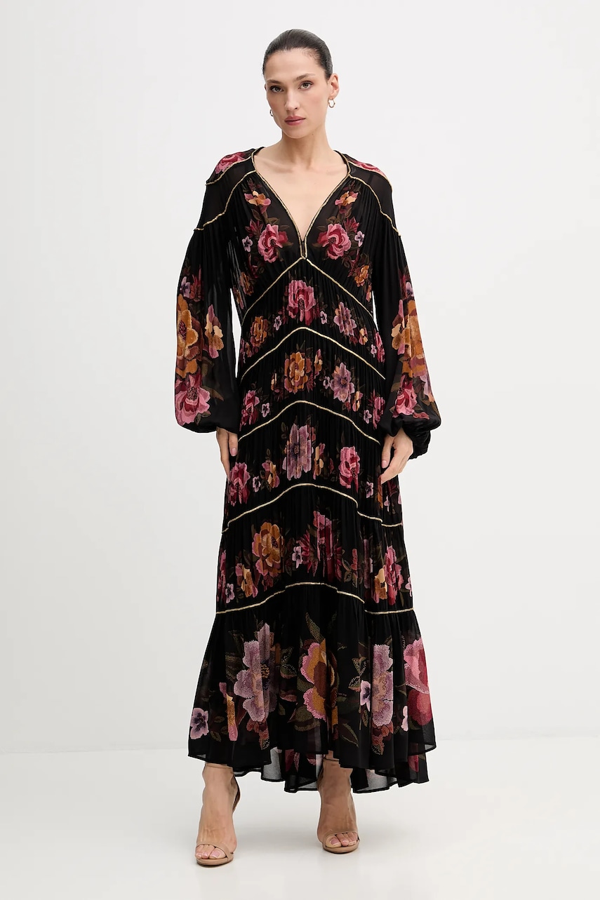 Farm Rio sukienka kolor czarny maxi rozkloszowana 342685