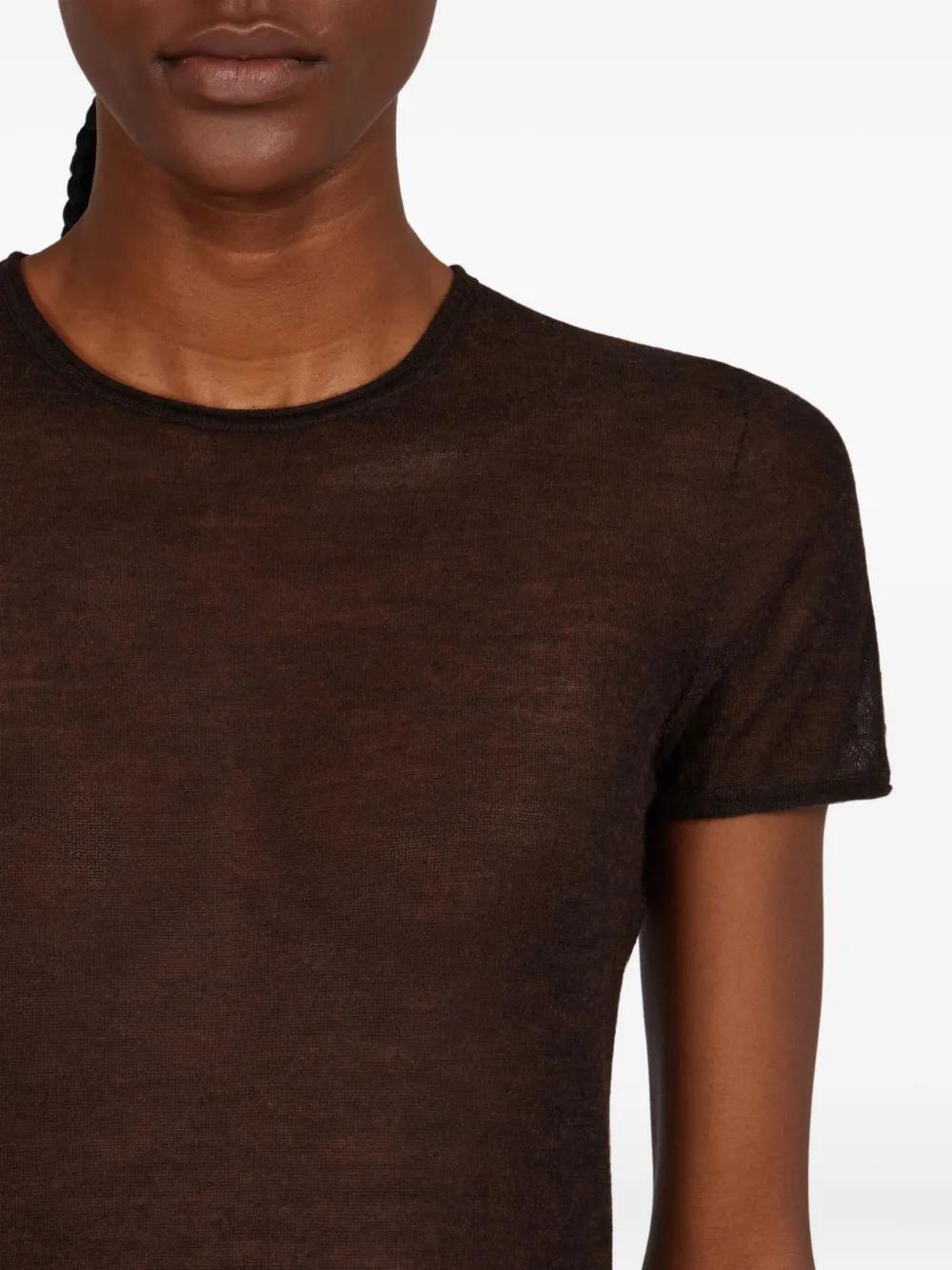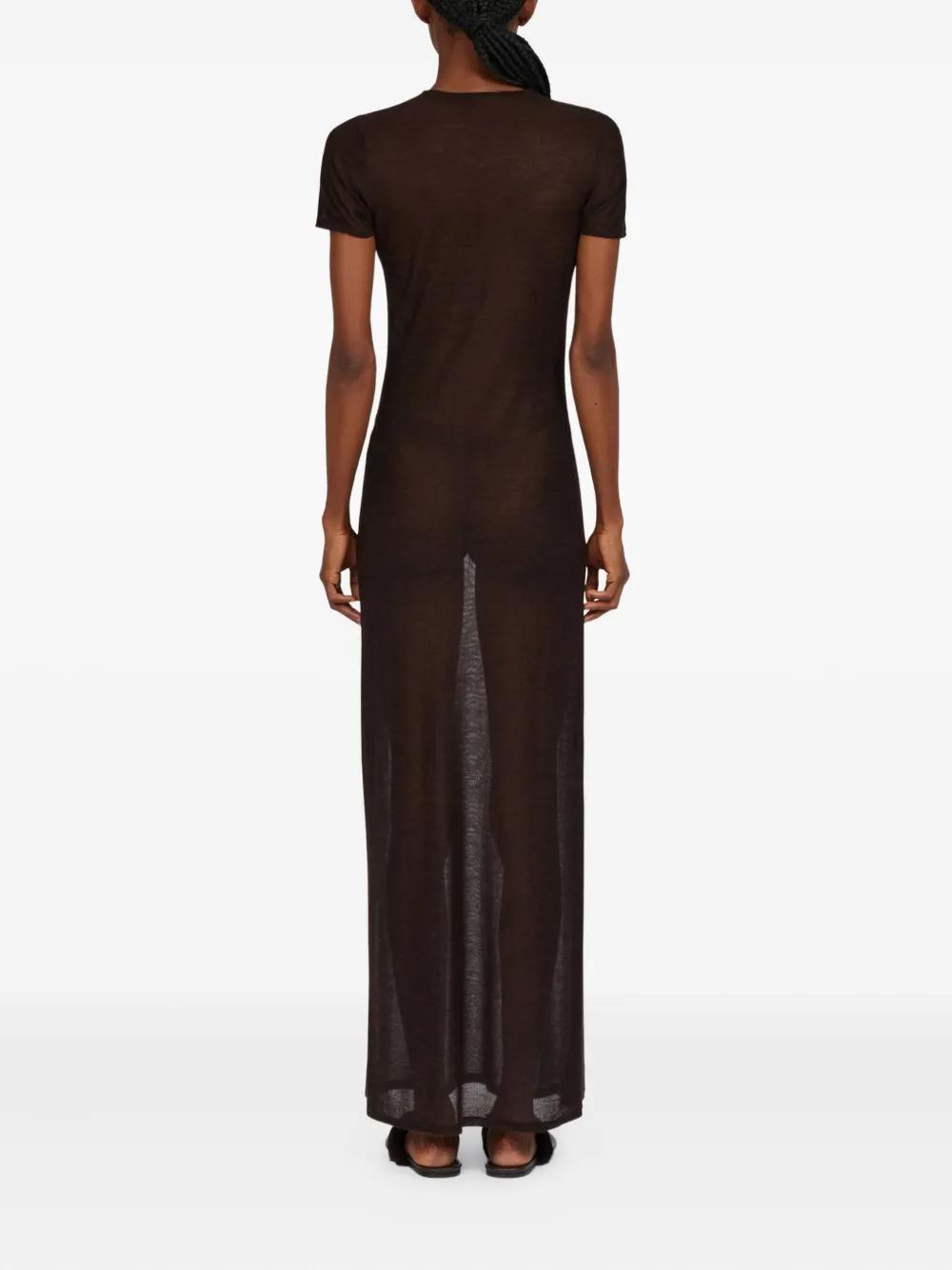 dark espresso brown short sleeves rolled neckline detail rolled sleeve detail seamless construction maxi length