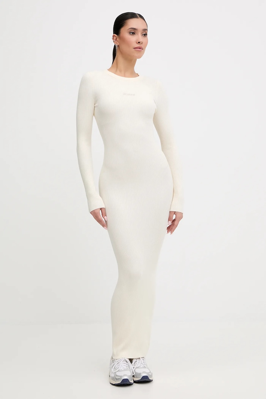 Guess sukienka FLAMINIA kolor beżowy maxi dopasowana V5BK02 Z3JD2