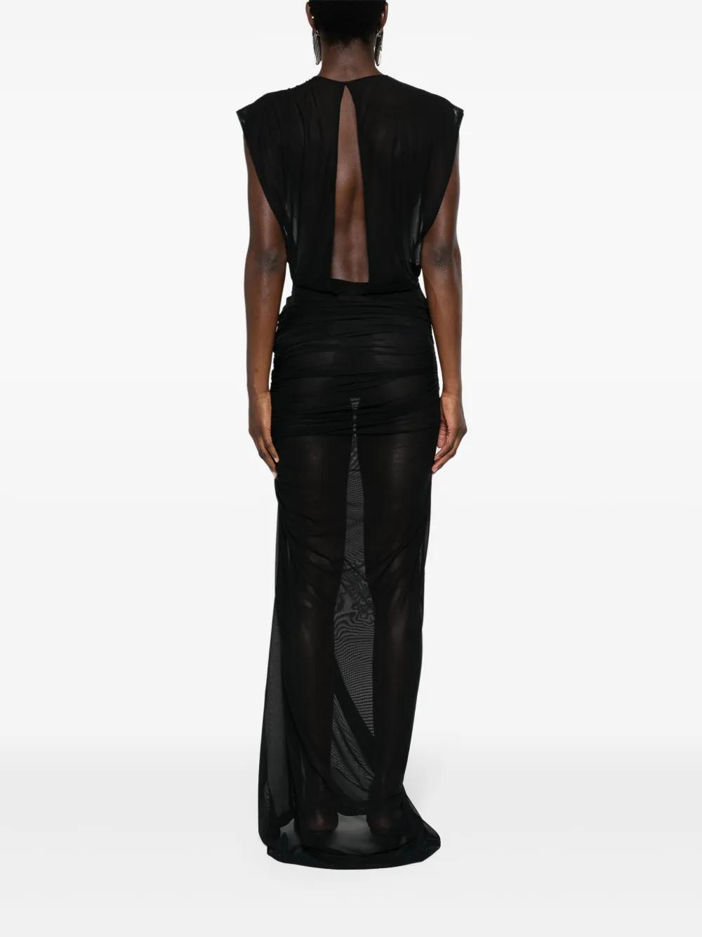 Jean Paul Gaultier logo-embroidered mesh maxi dress - Black