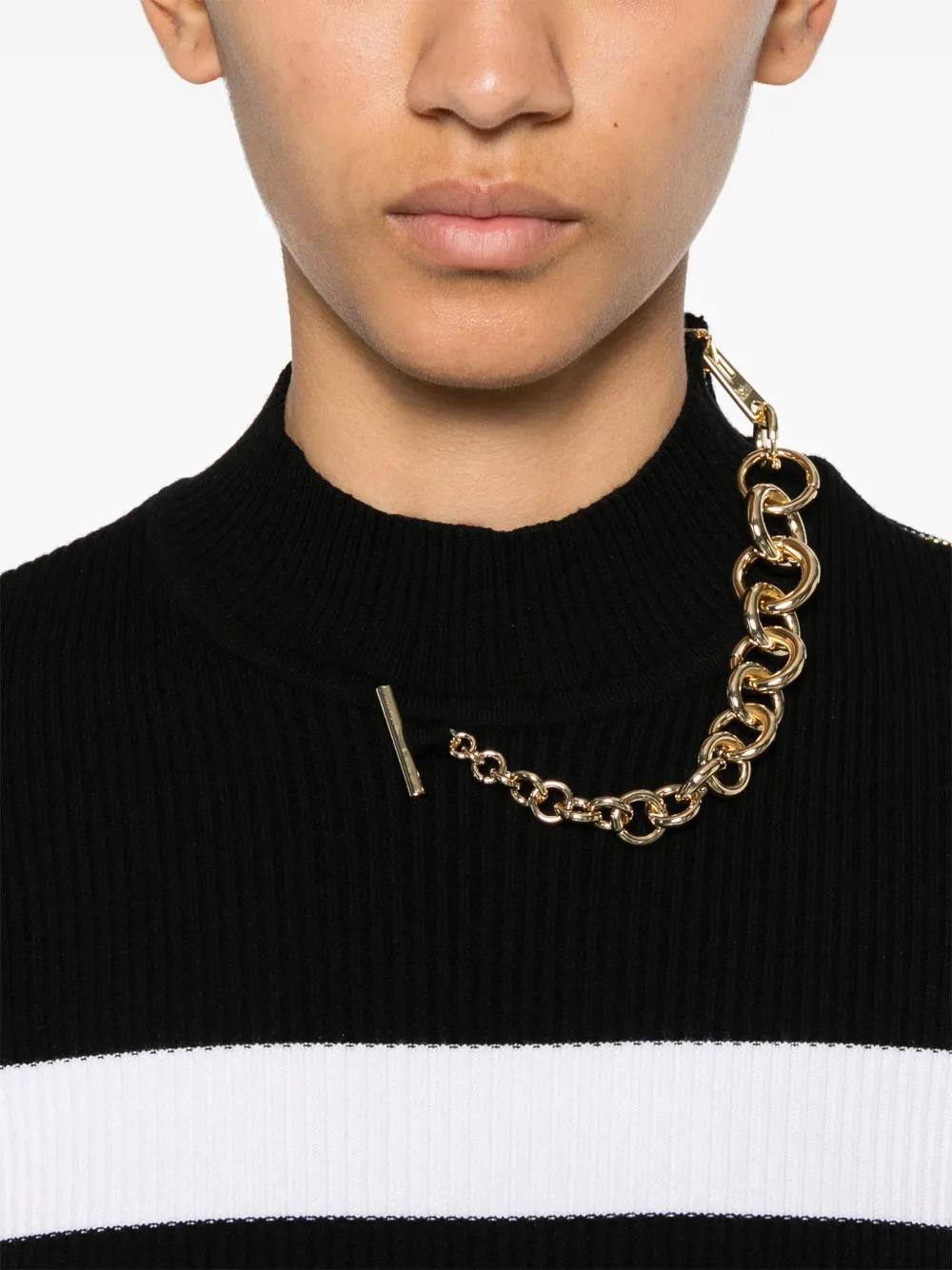 black shoulder zip fastening mock neck short sleeves chain-link detailing