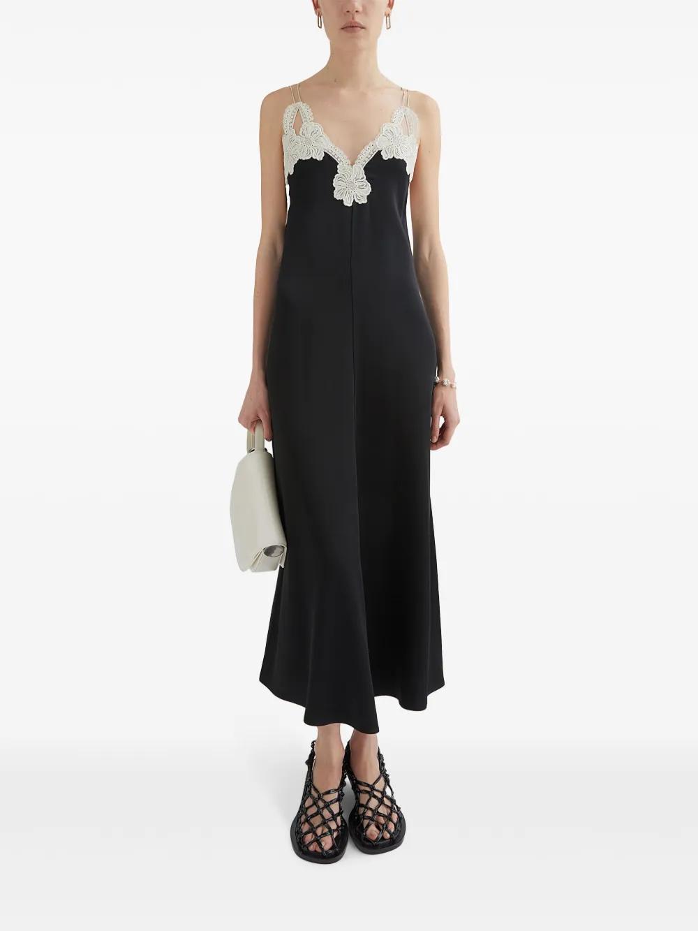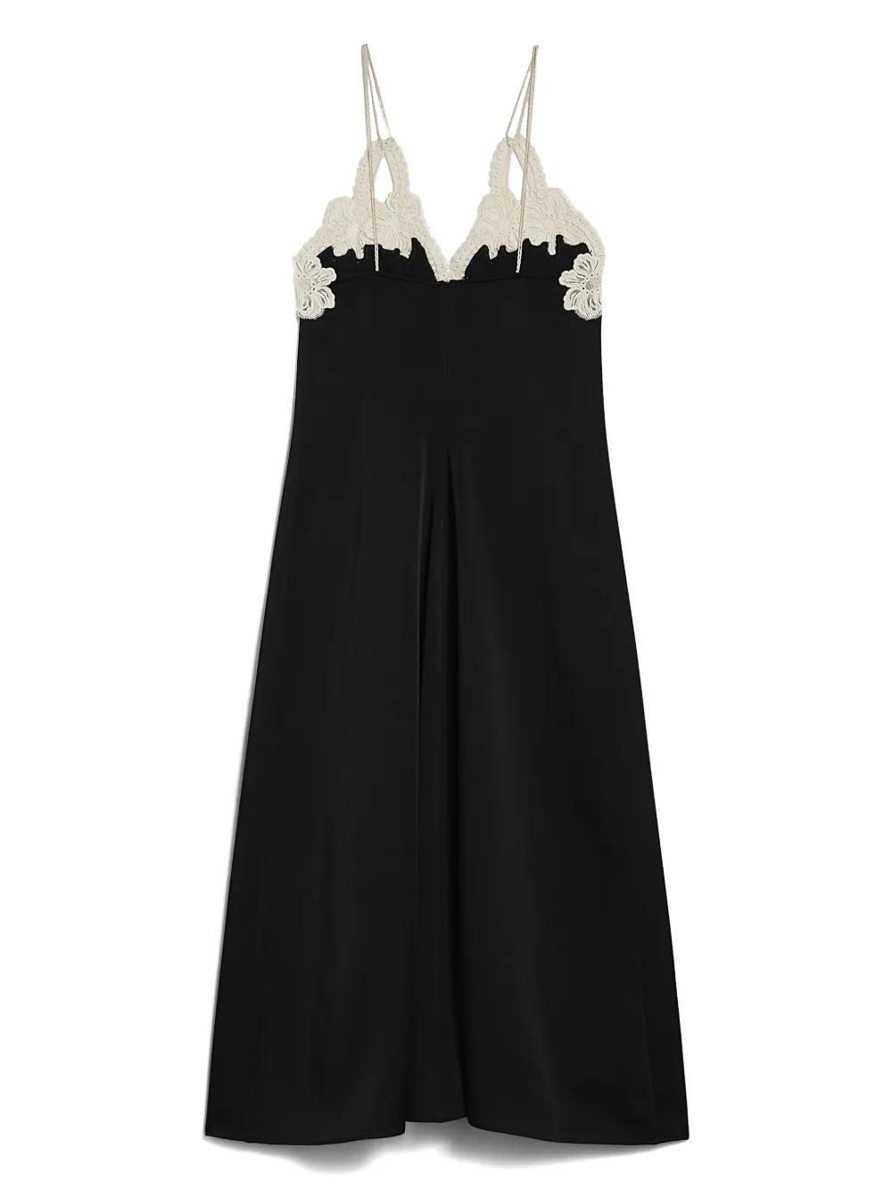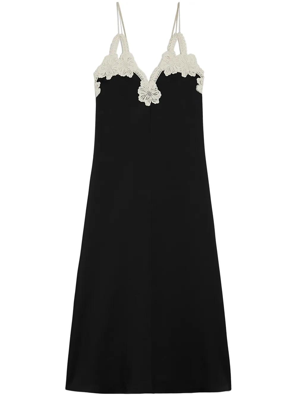 black/white lace trim floral embroidery concealed rear zip fastening V-neck spaghetti straps sleeveless shift style straight hem mid-length
