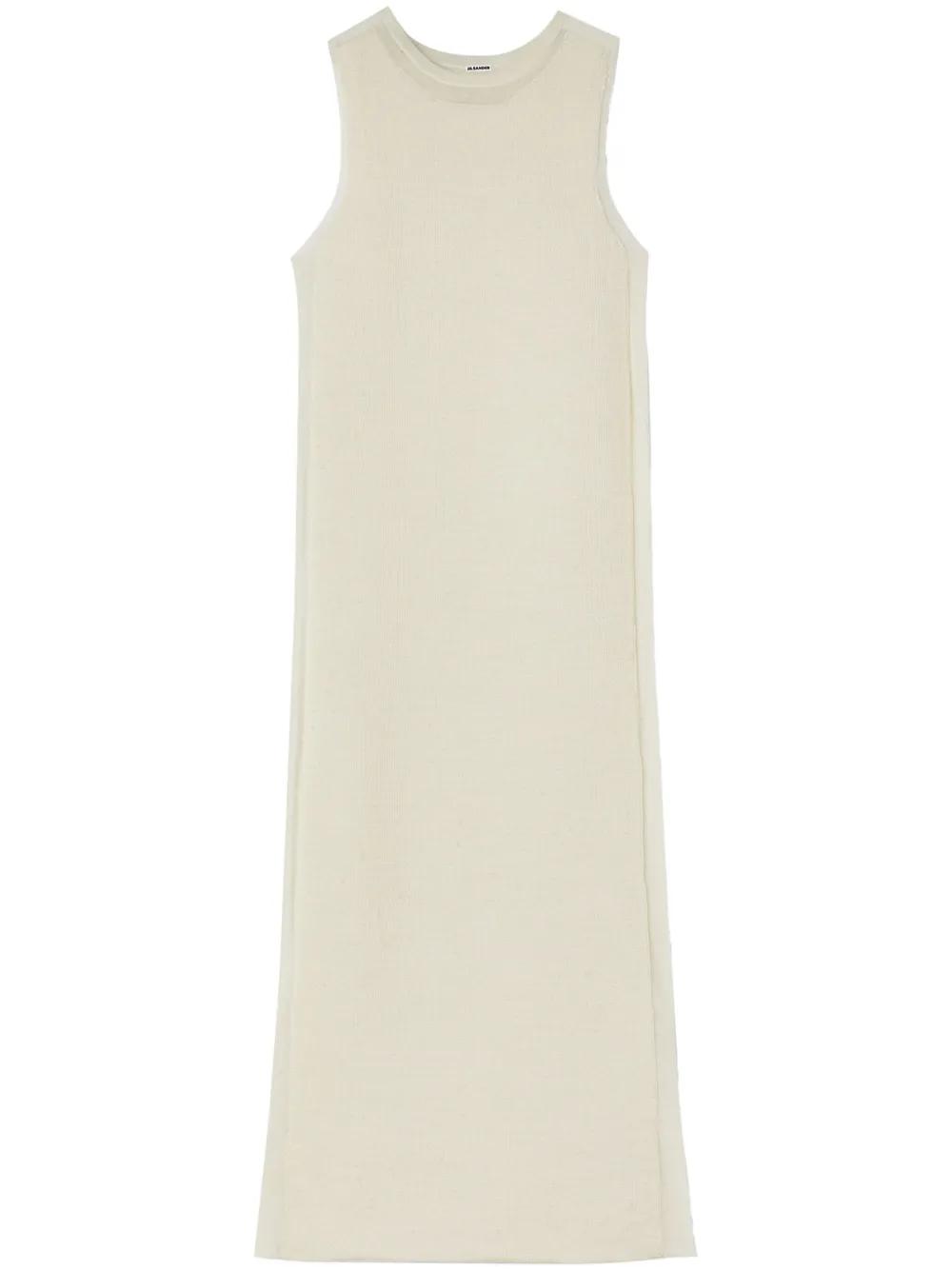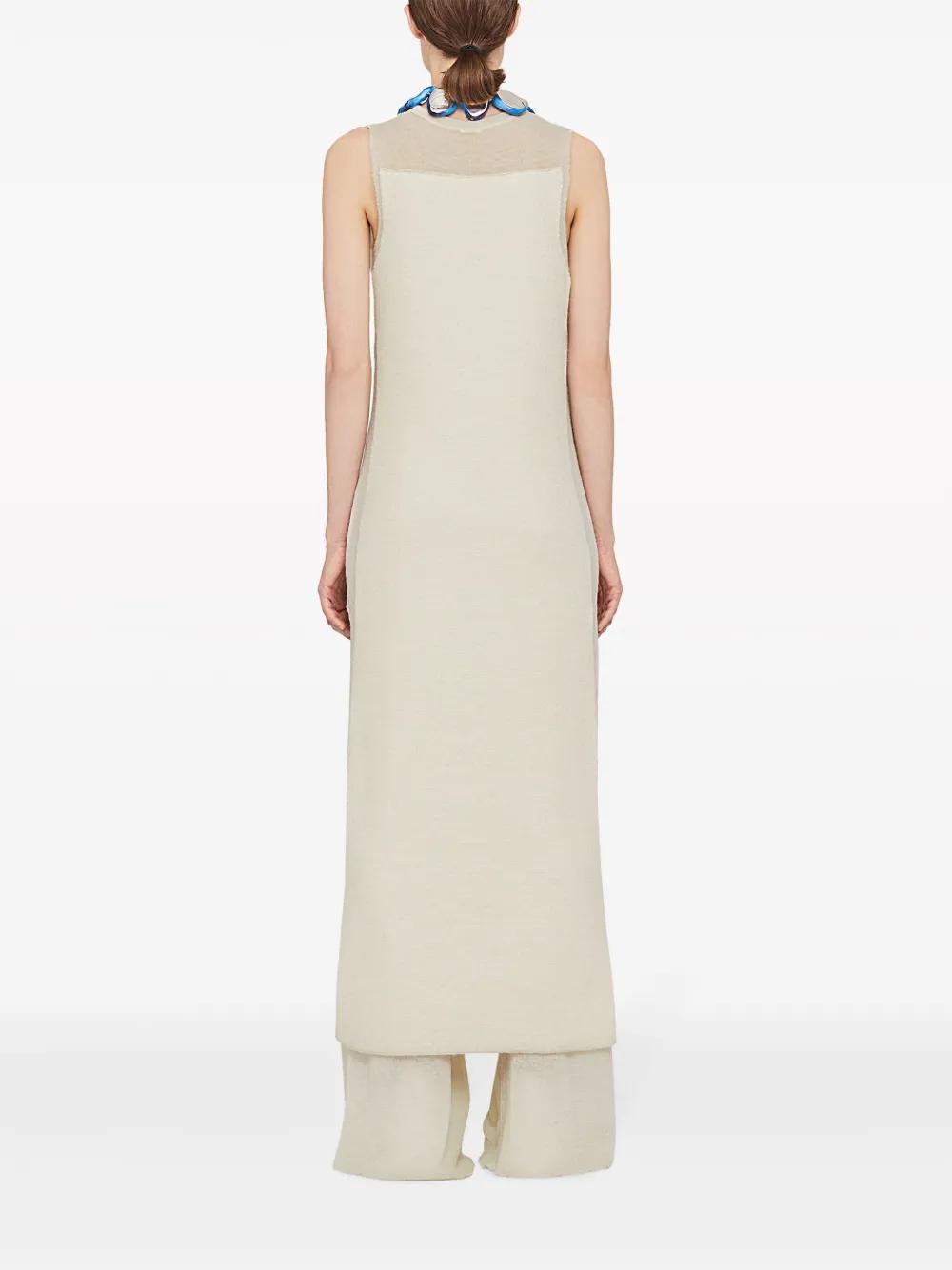 off-white wool blend knitted construction semi-sheer panels round neck sleeveless ankle-length