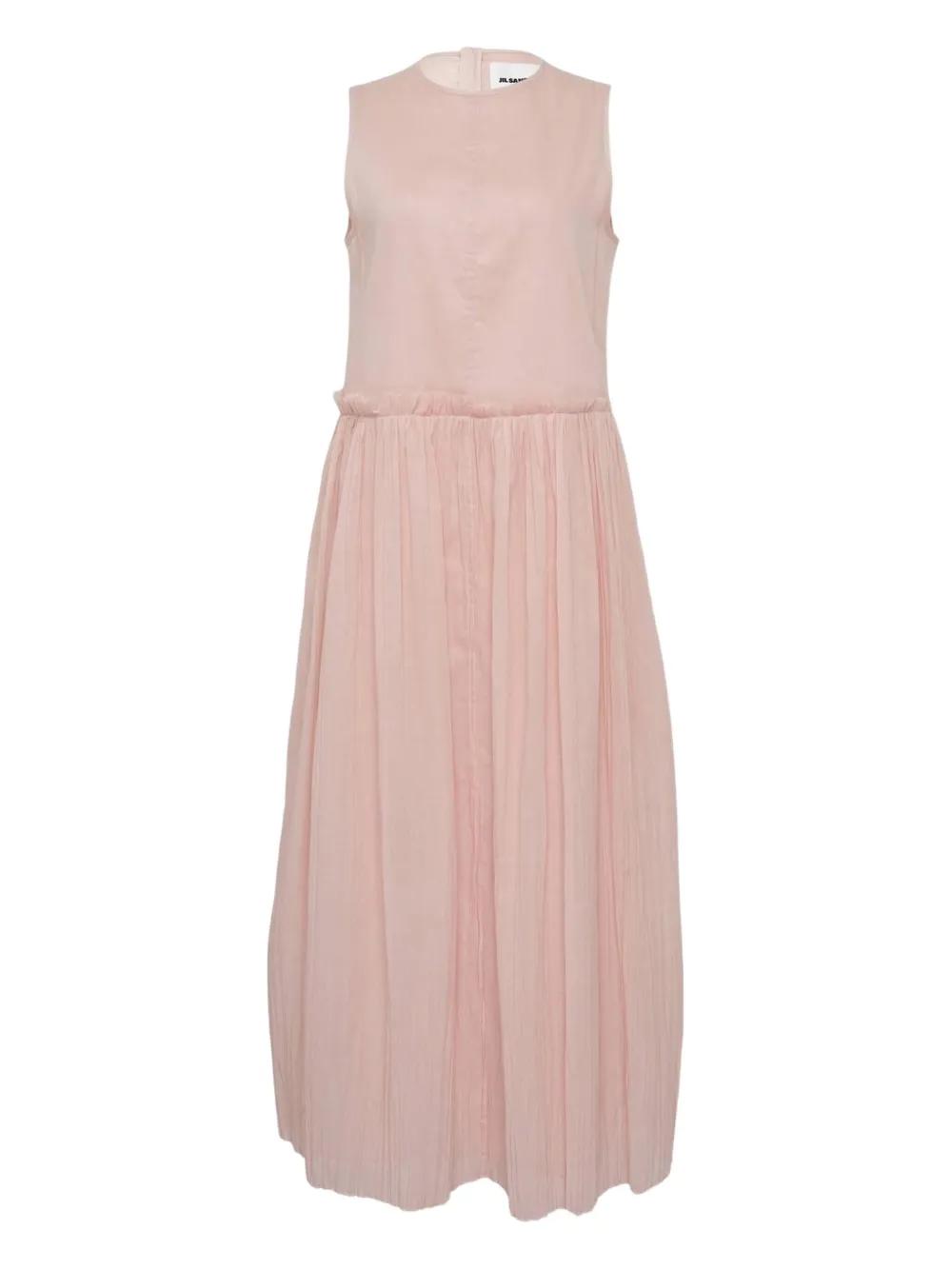 pink cotton pleated skirt round neck sleeveless back zip fastening
