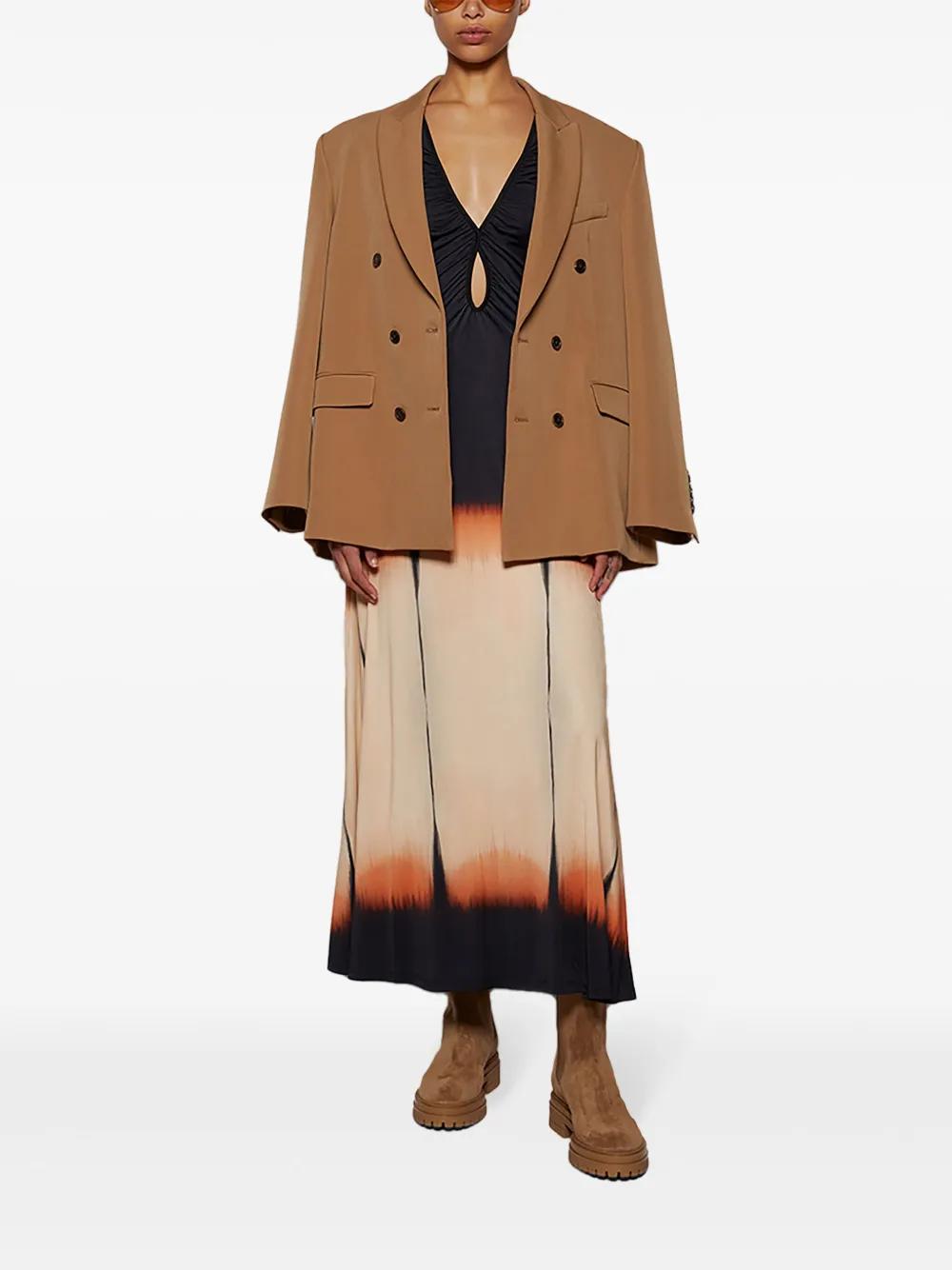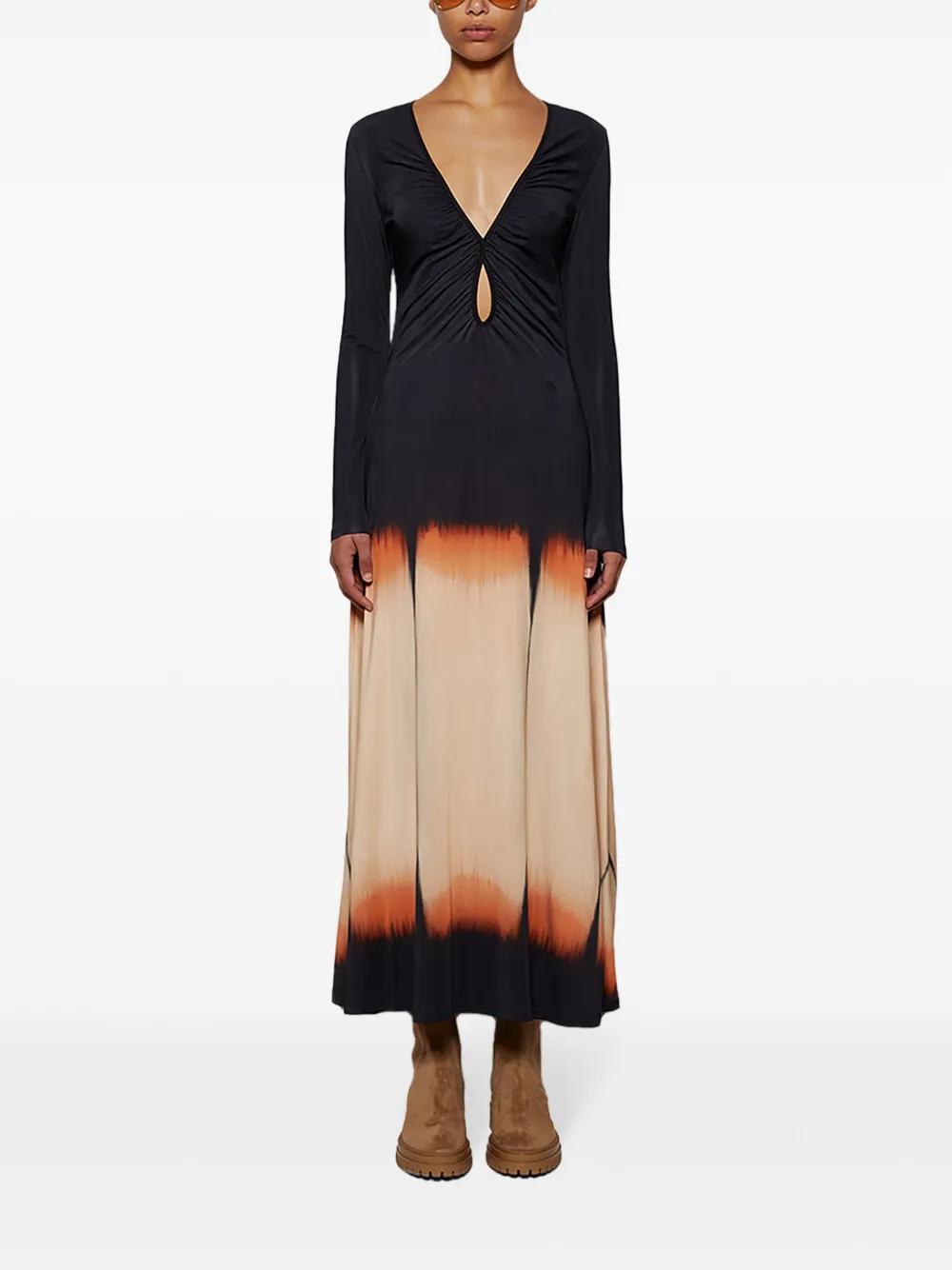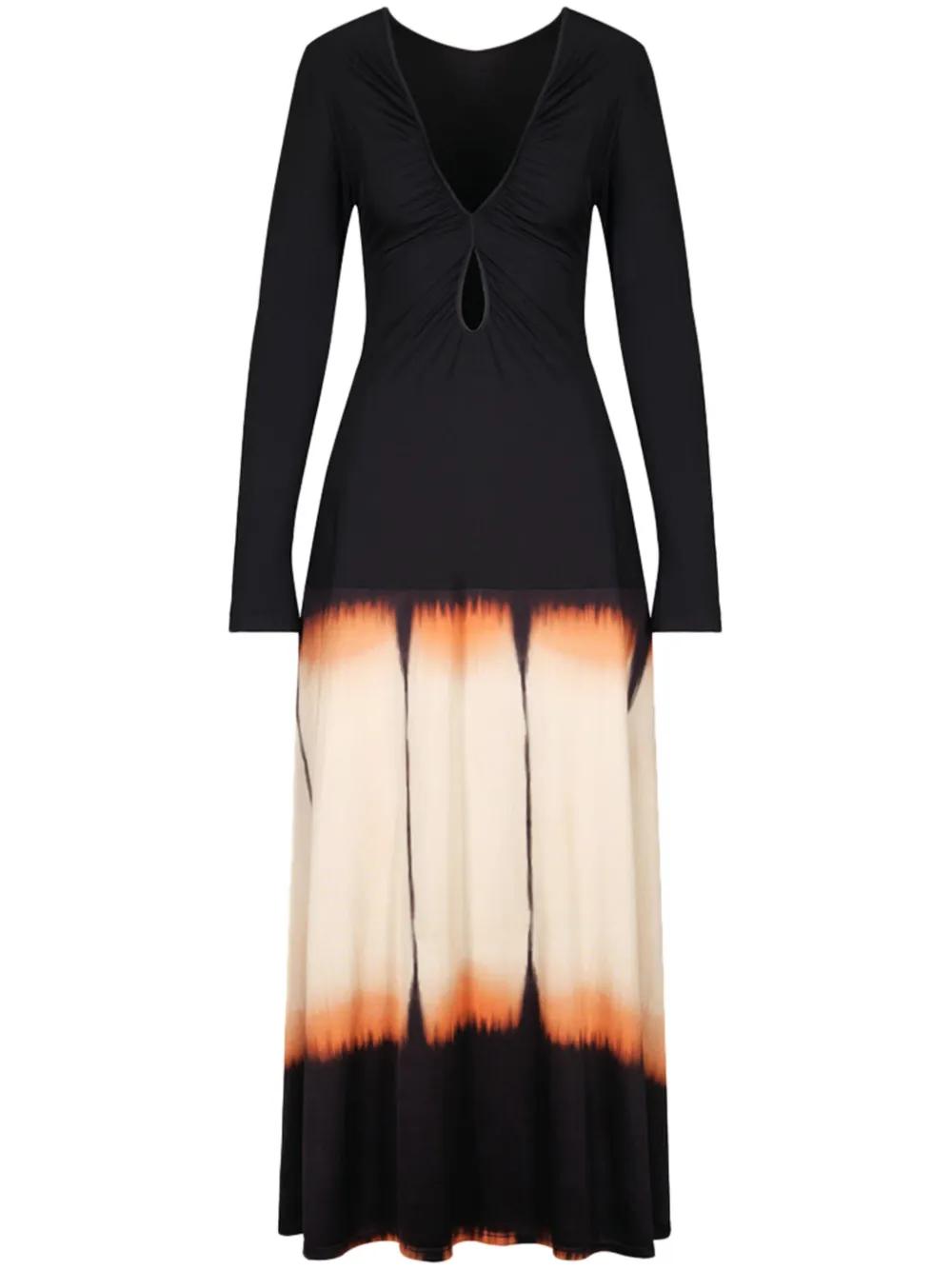 black/multicolour stretch-design slip-on style V-neck cut-out detailing ruched detailing long sleeves tie-dye print straight hem ankle-length