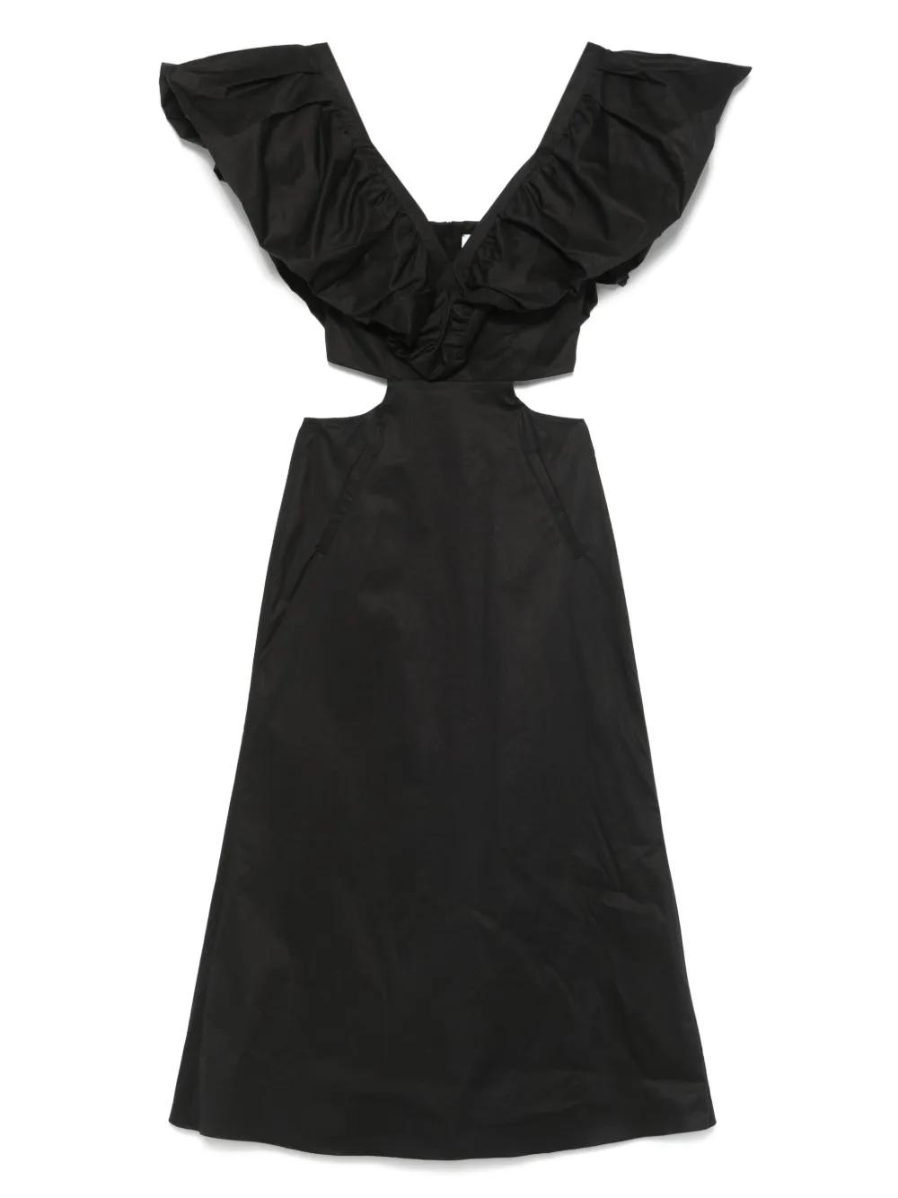 black rear zip fastening concealed rear zip fastening V-neck cut-out detailing